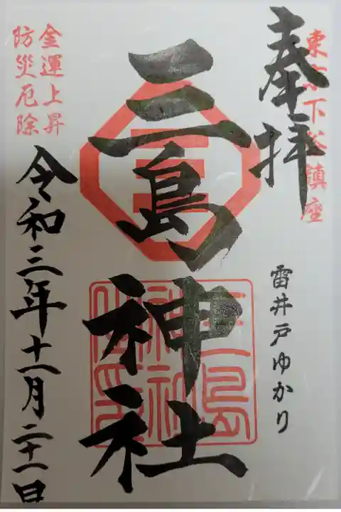 御朱印は三島神社のものと、この時期火事がきになりますので、火除稲荷社のものをいただきました。