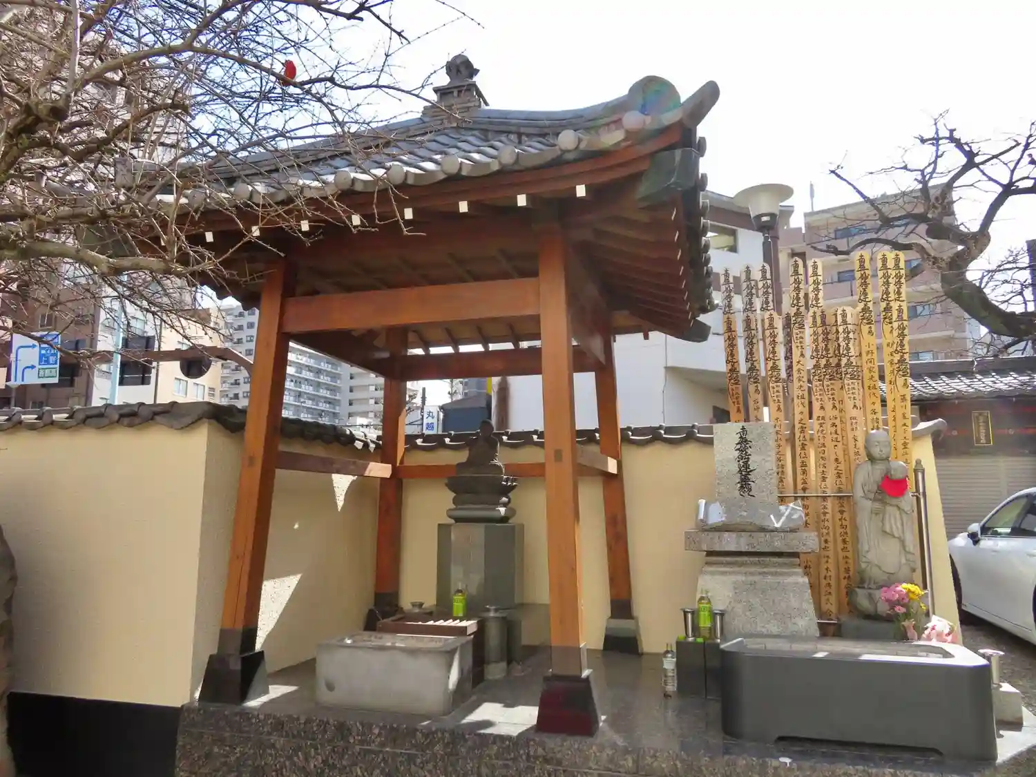 <恐れ入谷の鬼子母神>のフレーズでも有名な 入谷の真源寺 大きな通りに面した場所にあります 人、車…