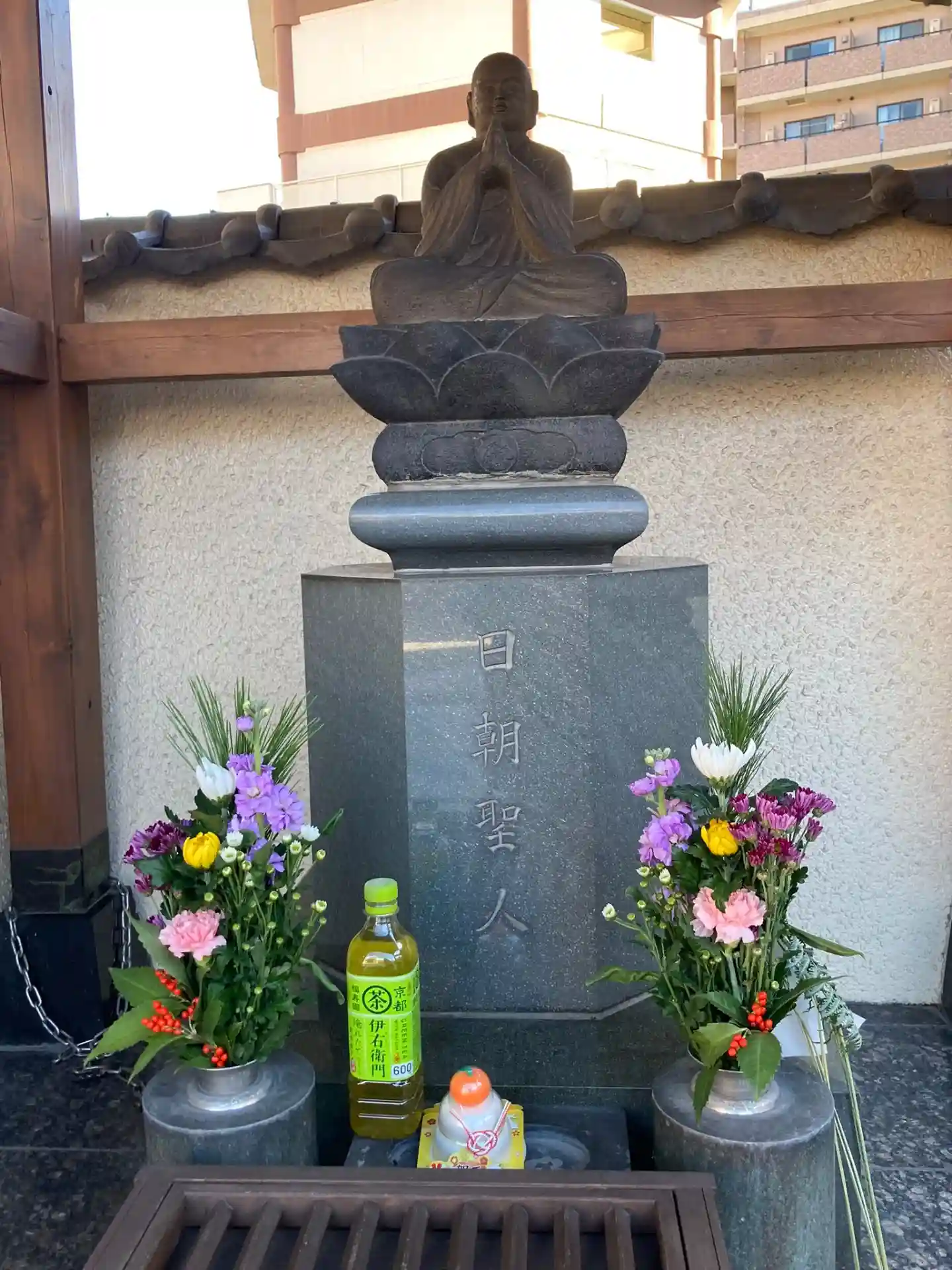 境内左側に《日朝聖人像》