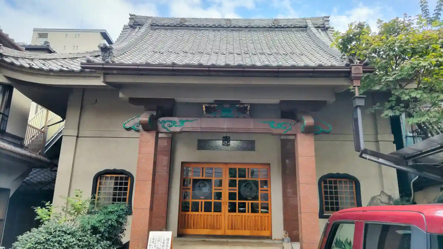 境内(本堂前)に1〜2台駐車出来ます。バックで入れた方がよいです。