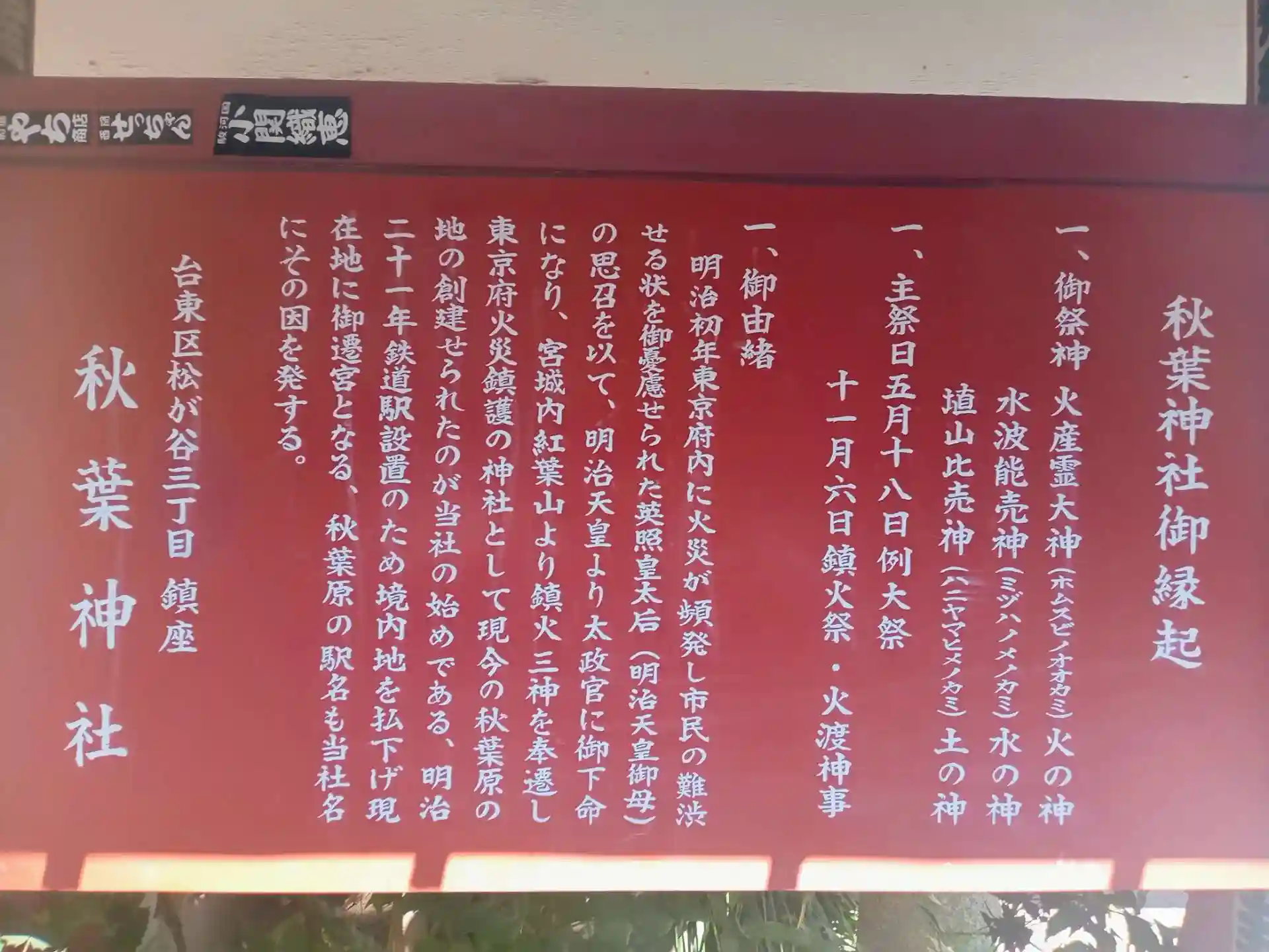 駅が設置されるため、入谷に遷座。建てられた駅は「秋葉原」の名が残されました。