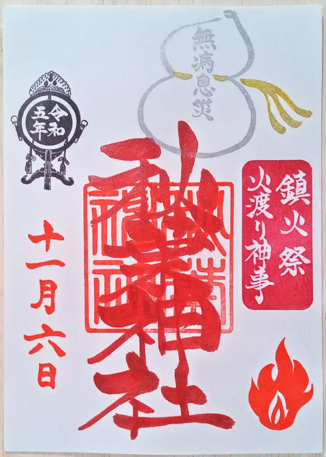 毎年11月6日に斎行されます当社の重要神事『鎮火祭火渡り神事』特別御朱印のご案内です。