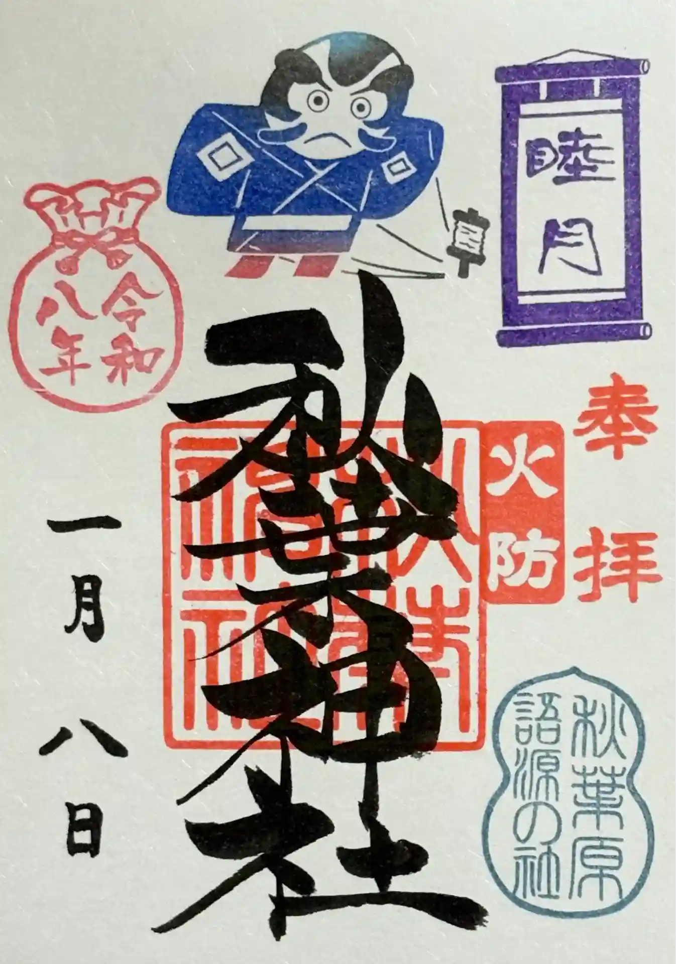 表面には秋葉神社の社殿とひょうたん、