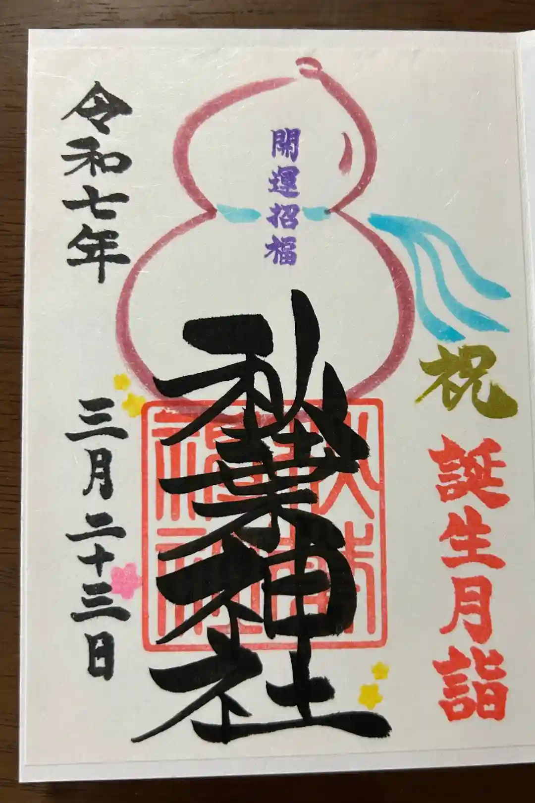 瓢箪と紐の色が選べる誕生月詣の御朱印