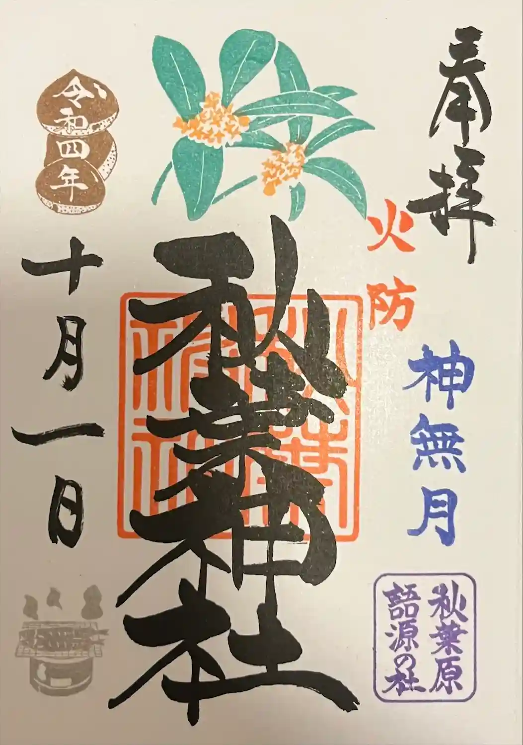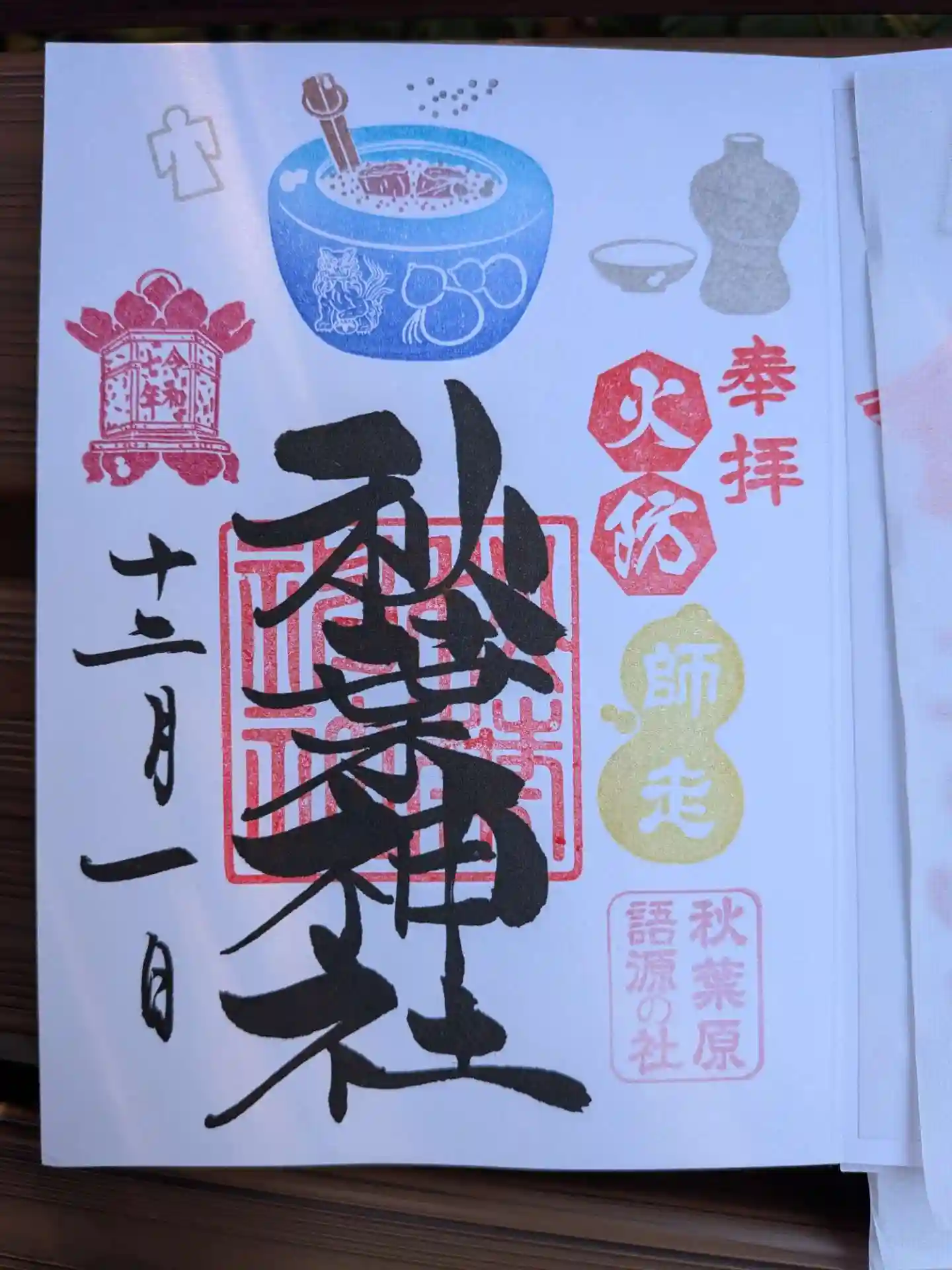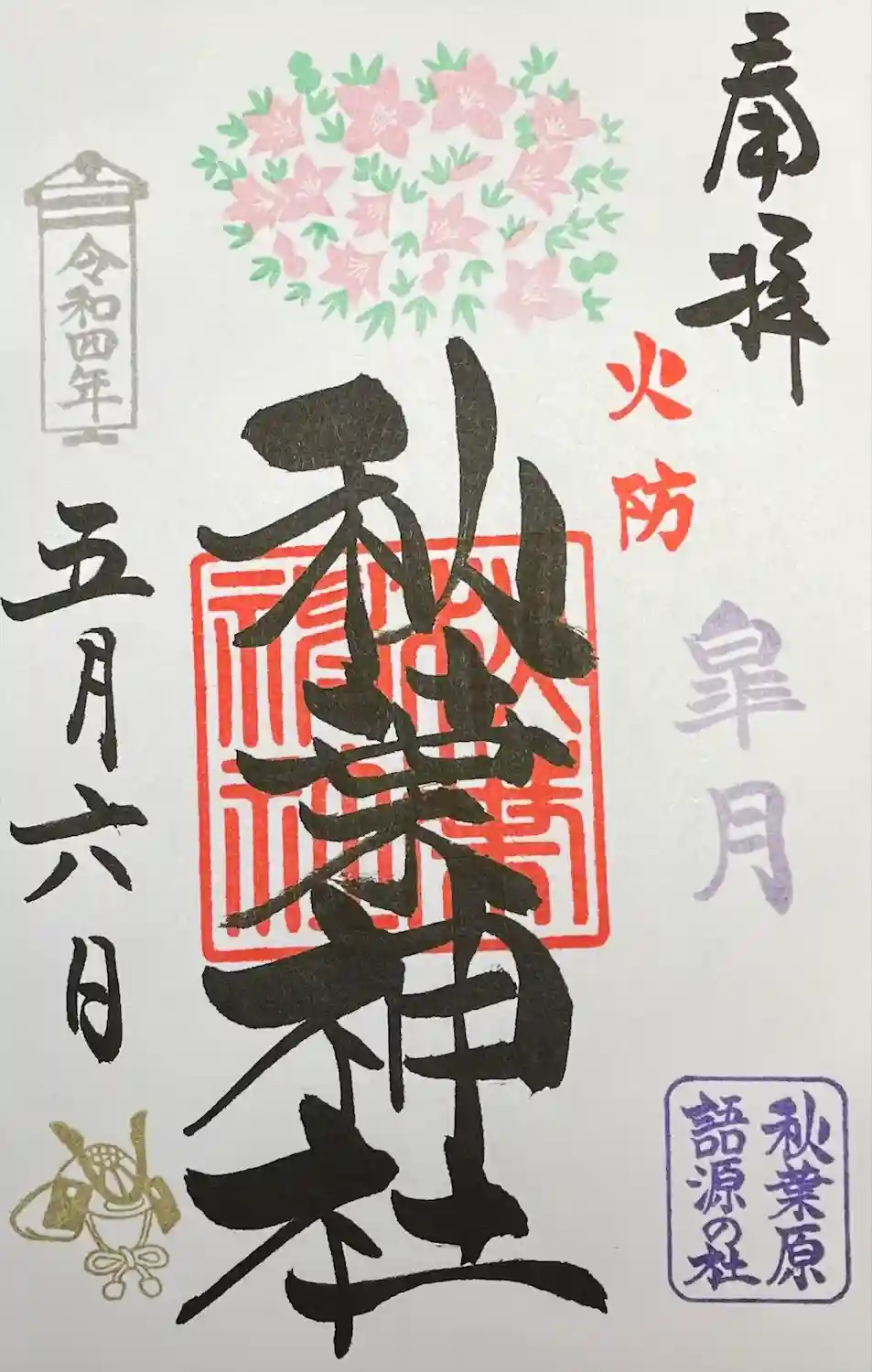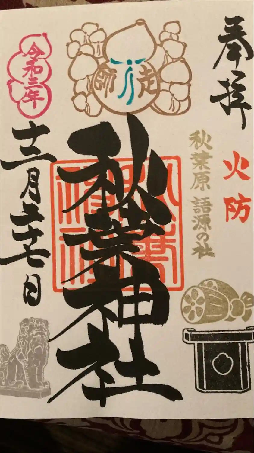 東京メトロ御朱印めぐり2社目。秋葉原語源の社。鎮火祭限定の御朱印も頂きました。