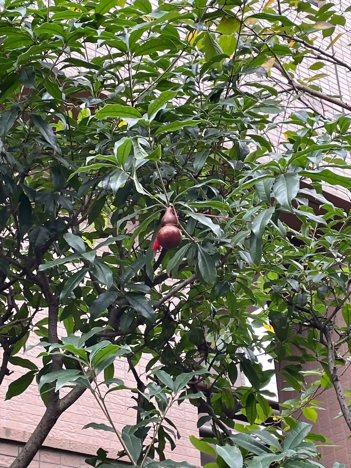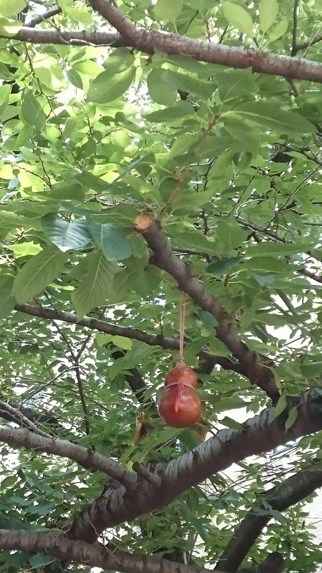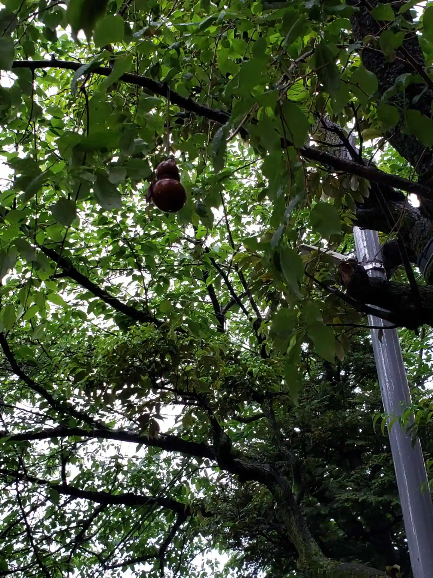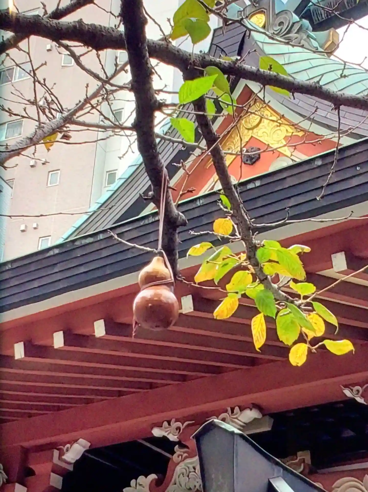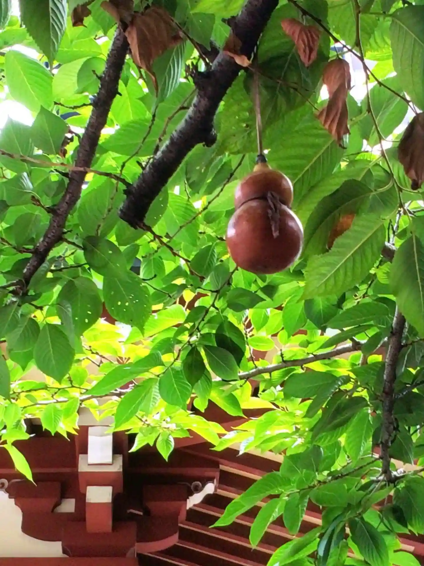 境内の木にひょうたんが。