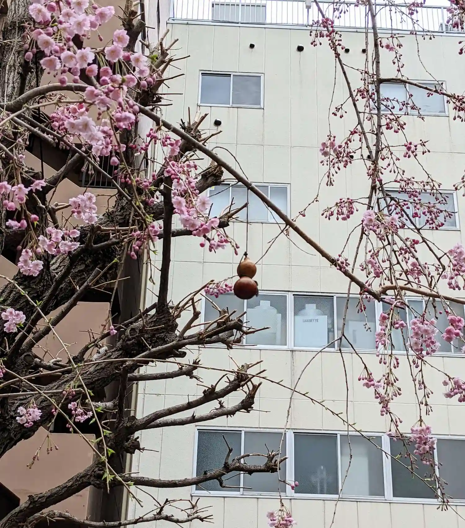 桜の樹にはひさご(瓢箪)が吊るされていました