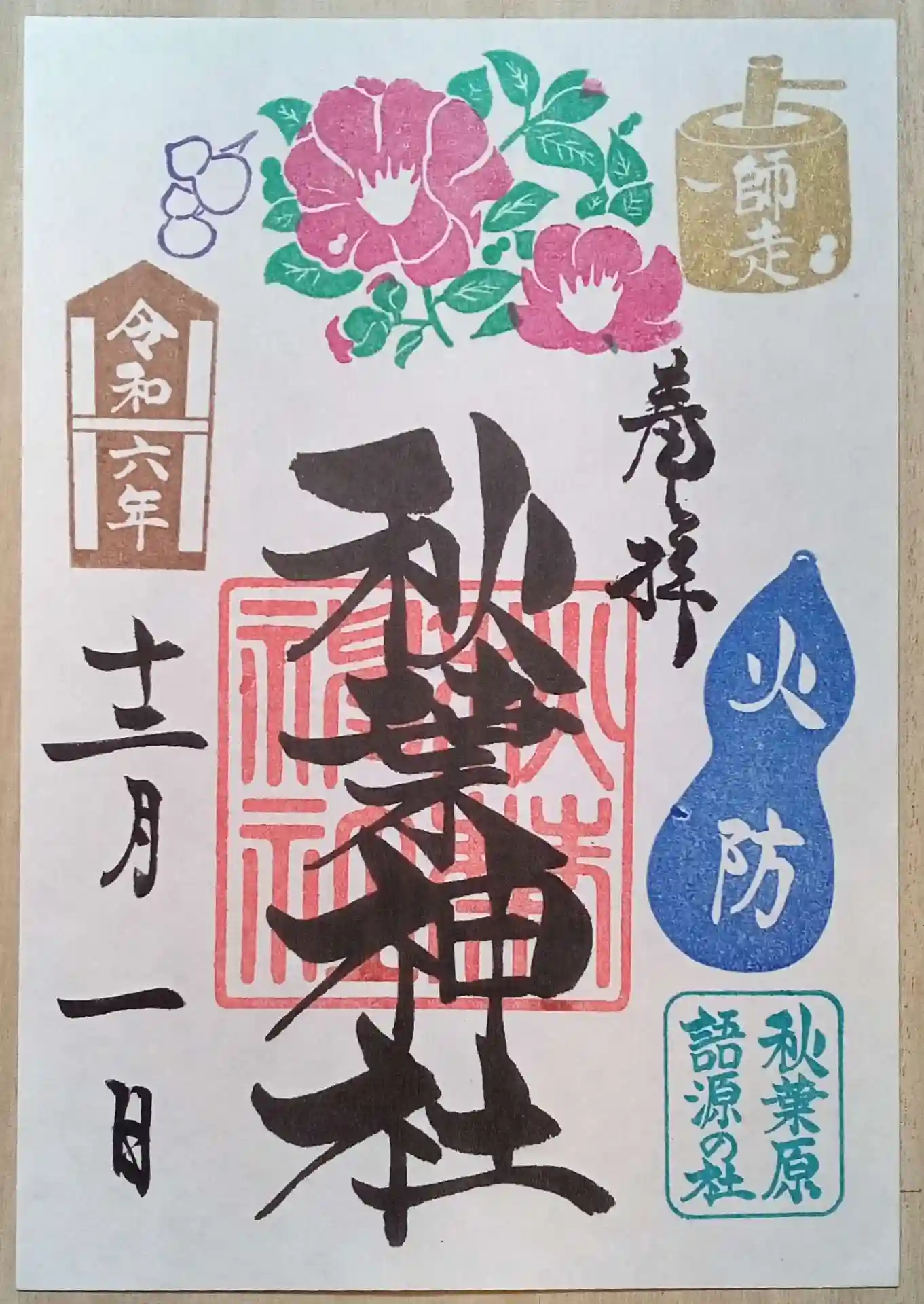 メトロ朱印めぐり2社目、秋葉原語源という秋葉神社は静かな清々しい印象でした。御朱印には可愛い絵柄が…