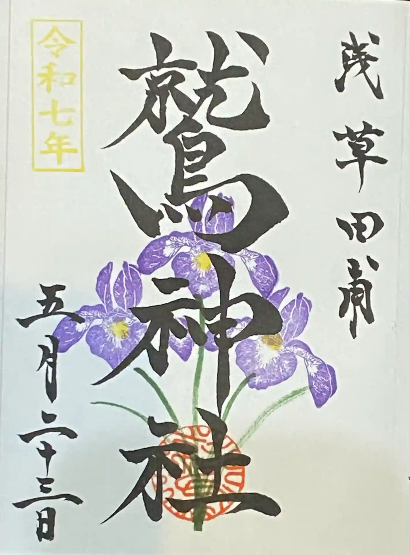 五月限定の菖蒲の御朱印を直書きでいただきました。とても美しい書体で何度も見返してしまいます。