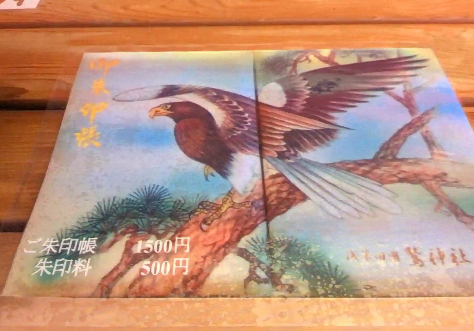 今使用していた神社さん共有のご朱印帳が終わりましたので、以前から気になっていた、こちらの鷲の柄の御朱印帳も頂きました。