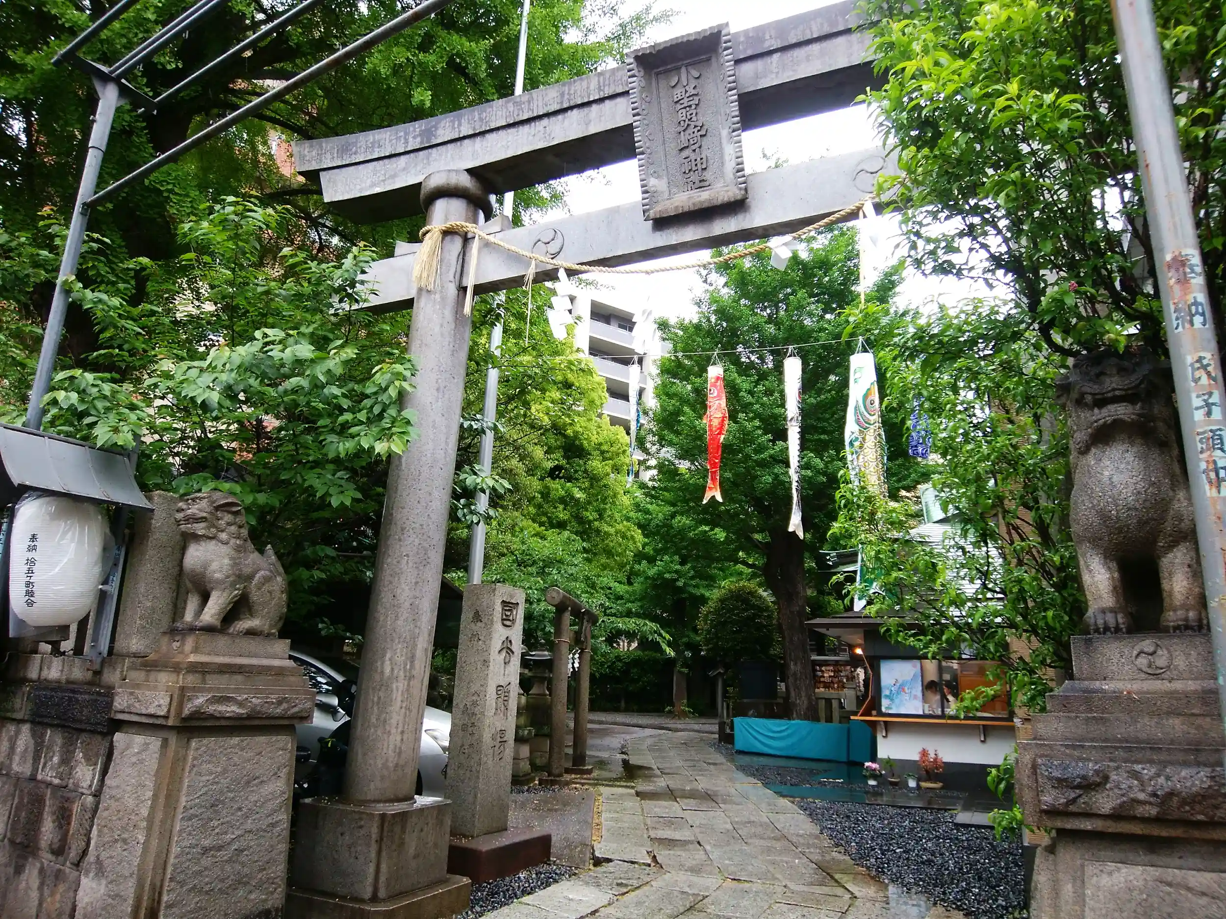 鳥居の先の鯉のぼりもグッショリ☔