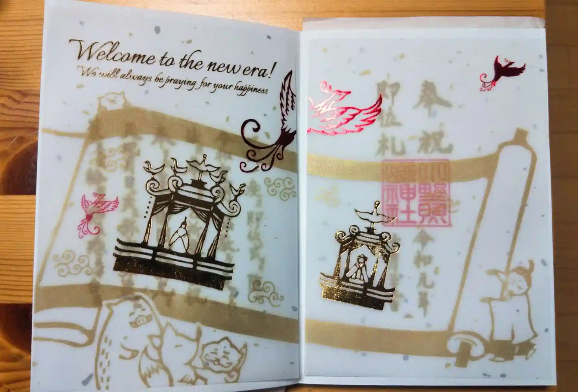 ゴールドの絵巻物とピンク色の鳳凰✨とても華やかですね~来月に続く絵柄が楽しみです(*´∀`)♪