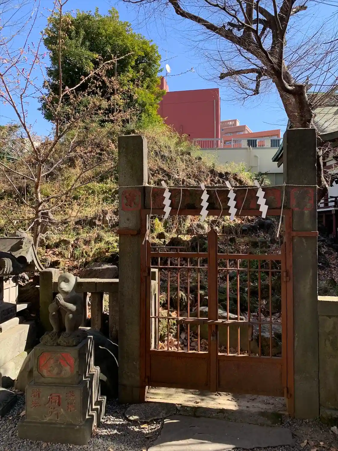 社殿の左手に閉門されていますが富士塚が。