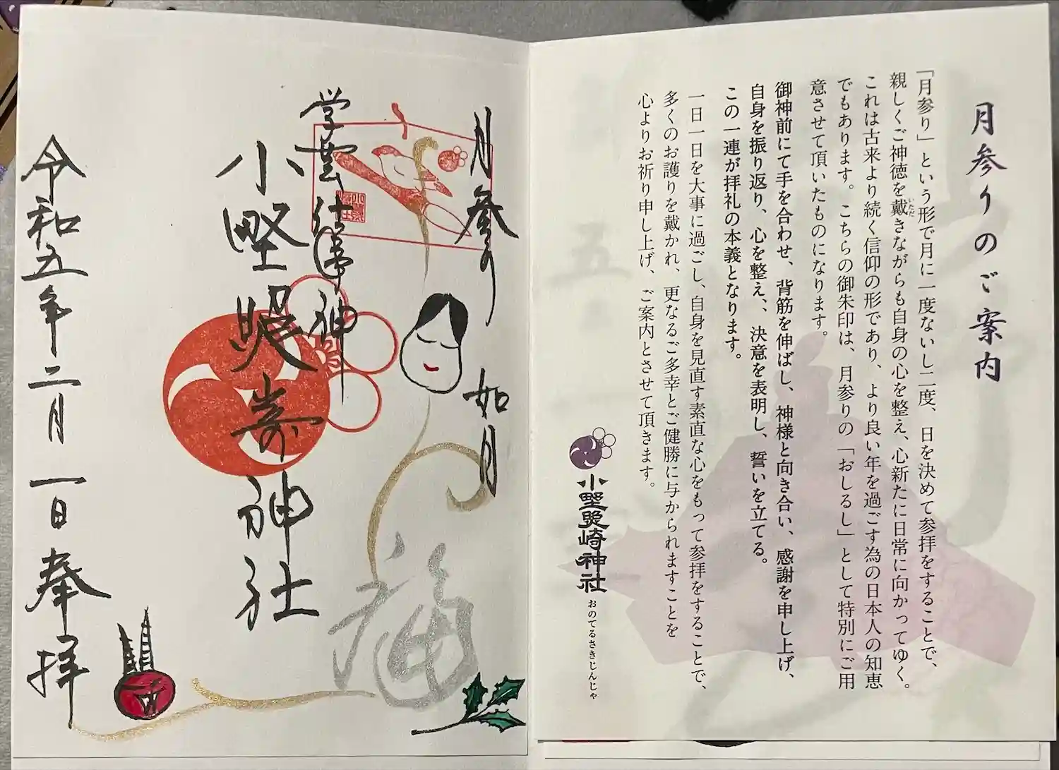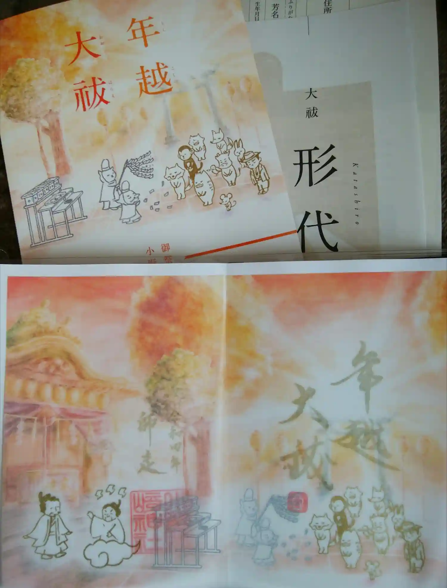 御朱印と一緒にいただいたリーフレットと形代