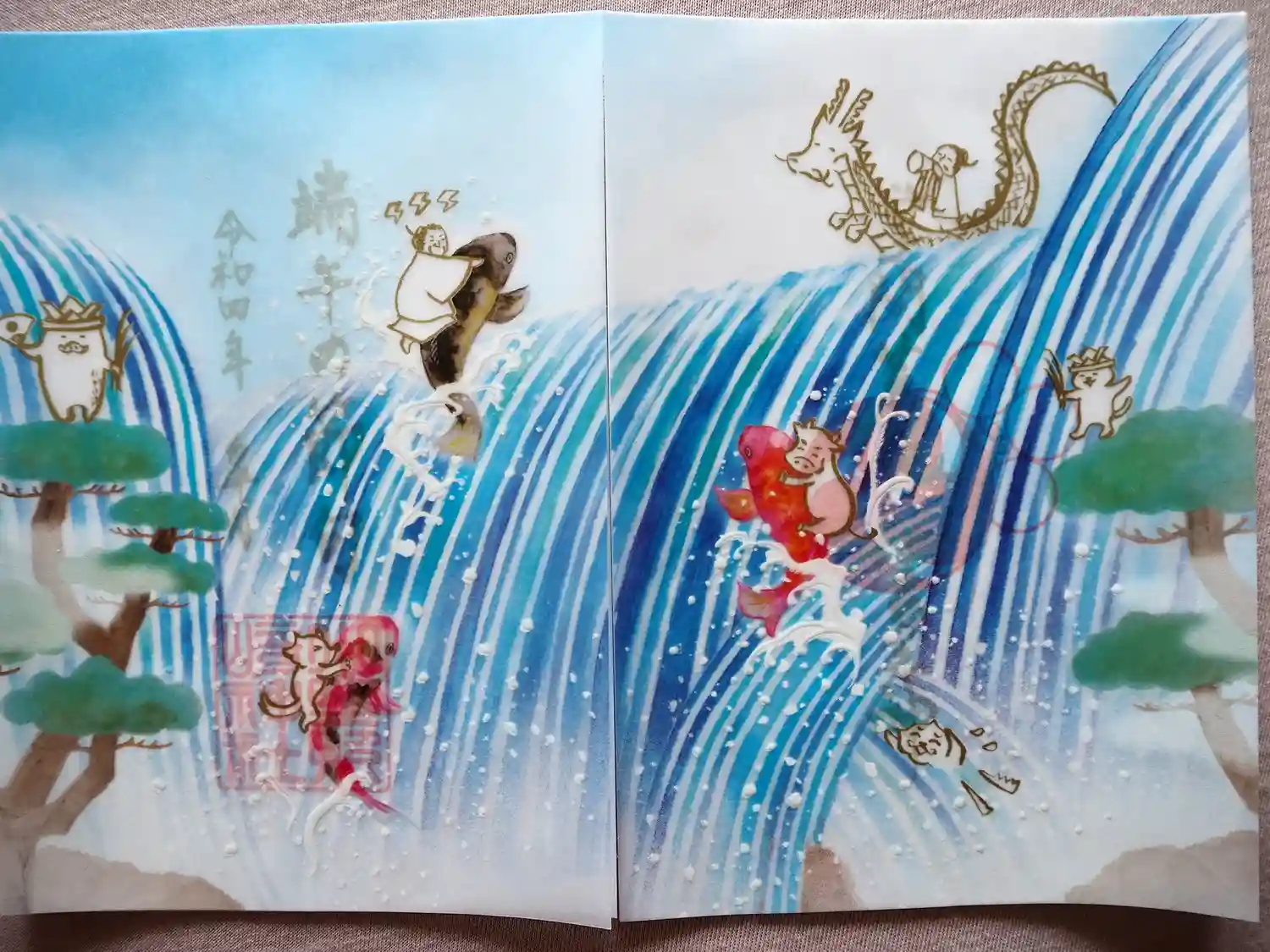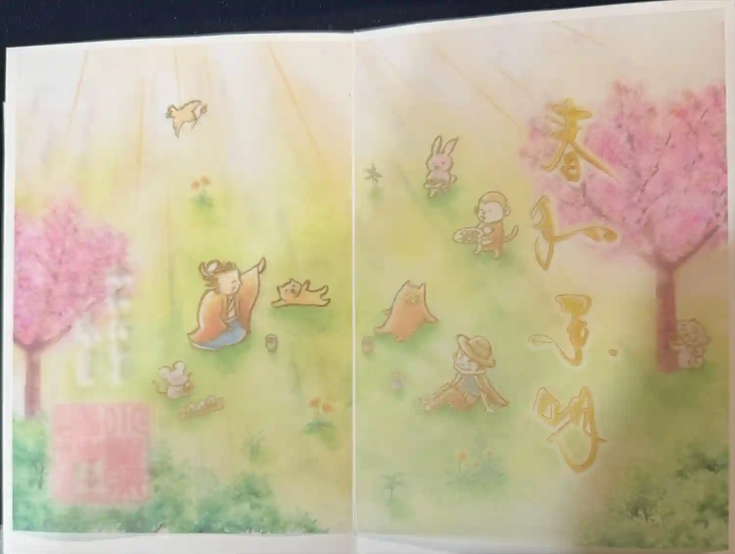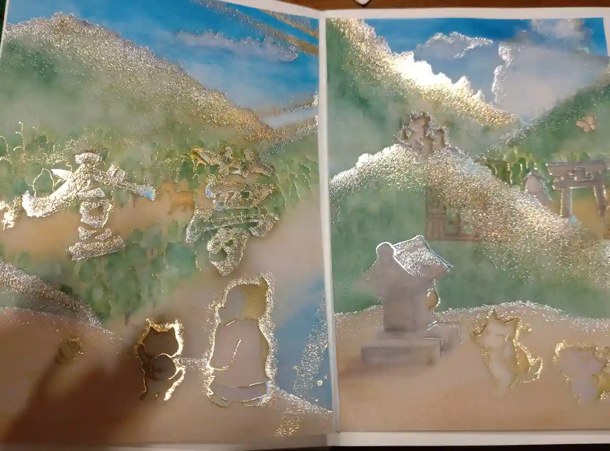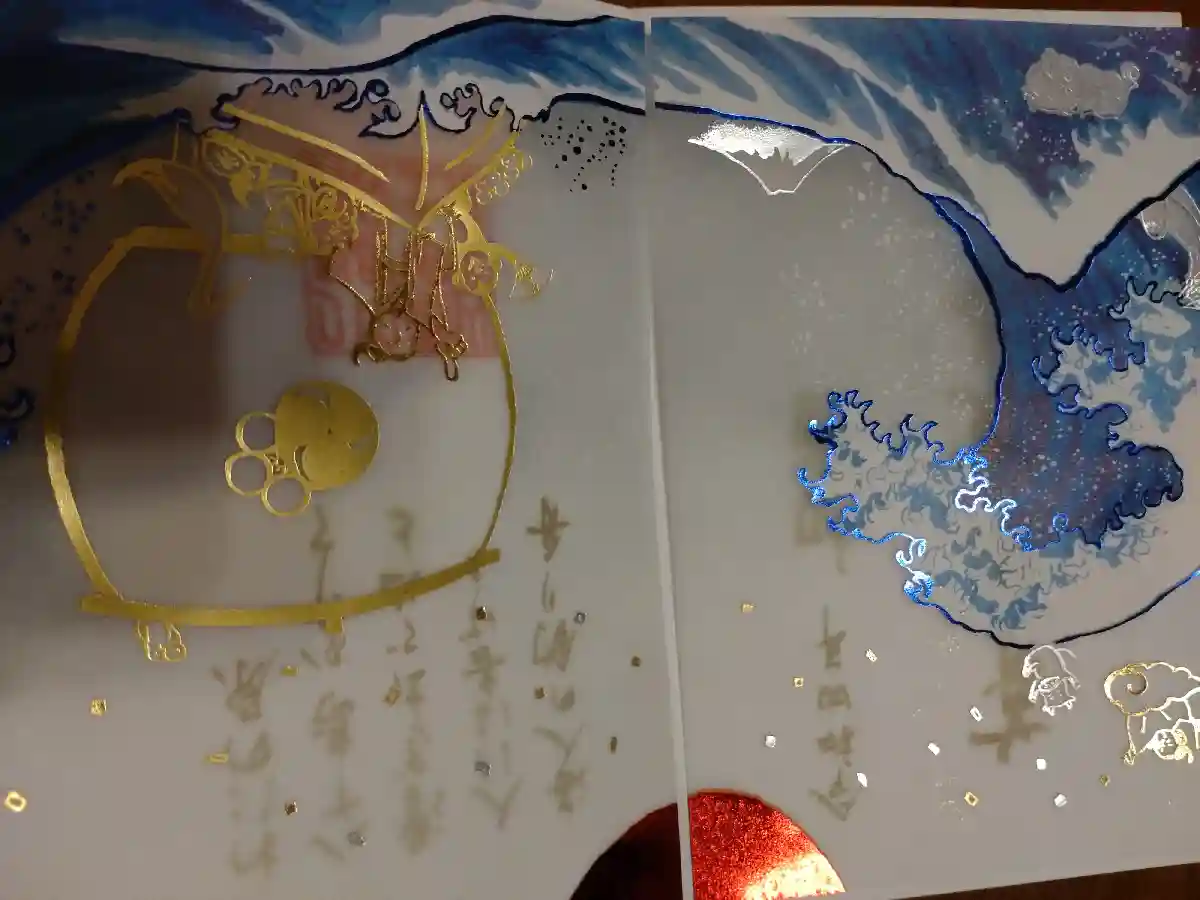 透かし紙をめくると金色の文字が書かれてあります。