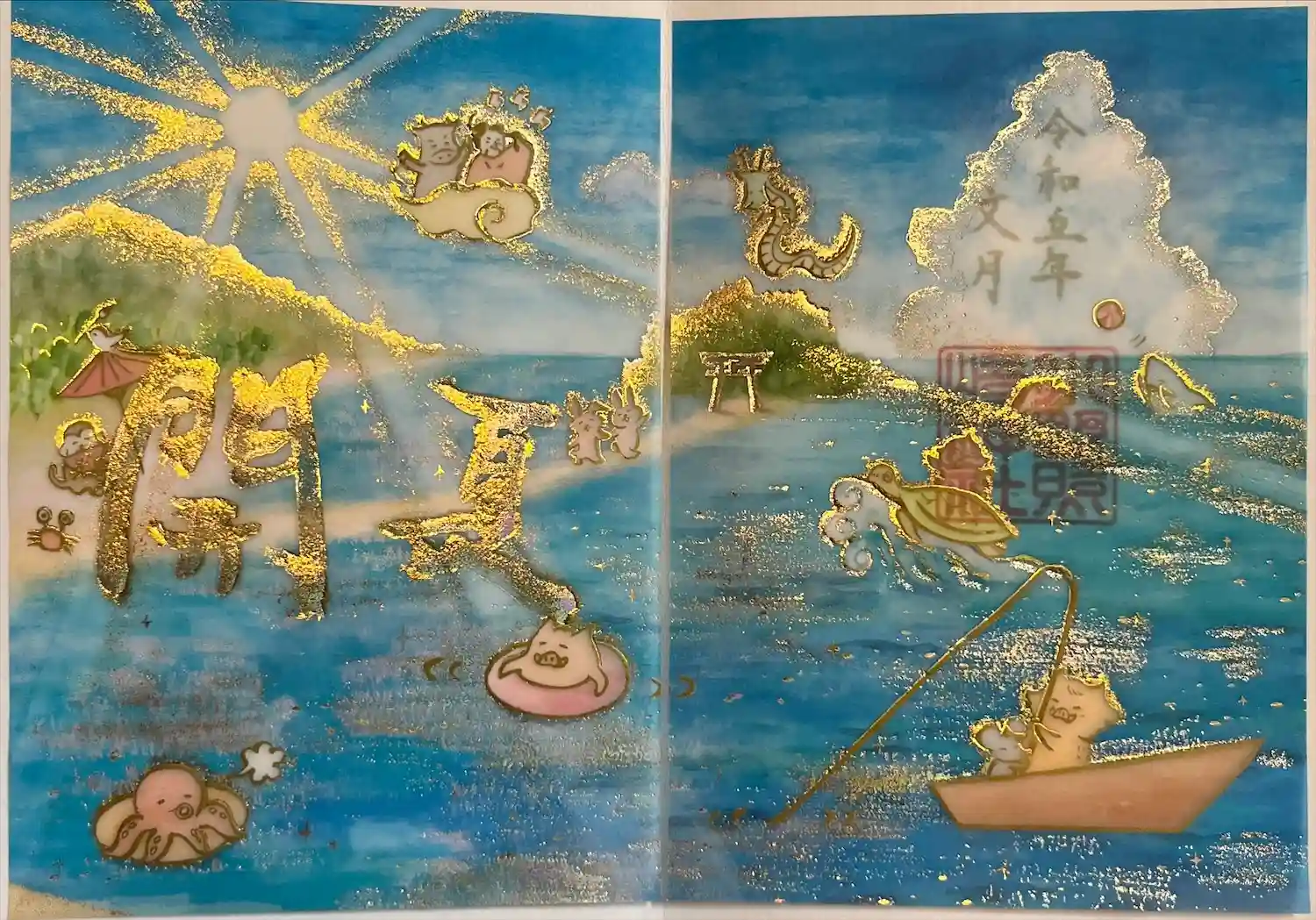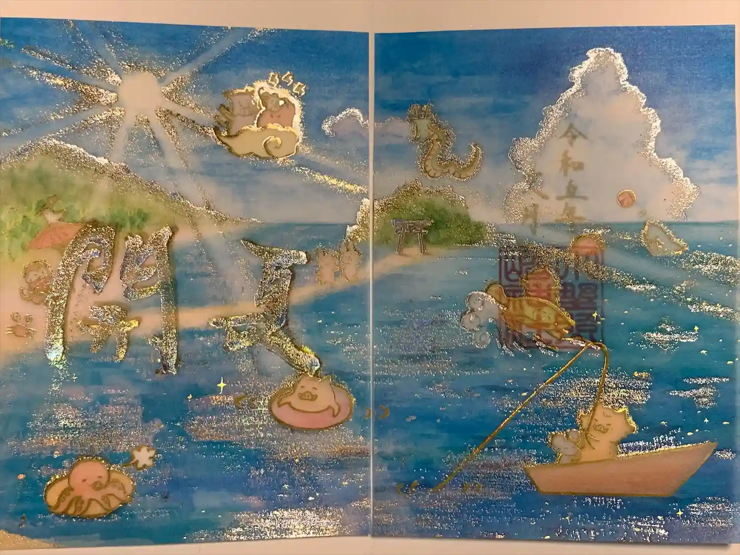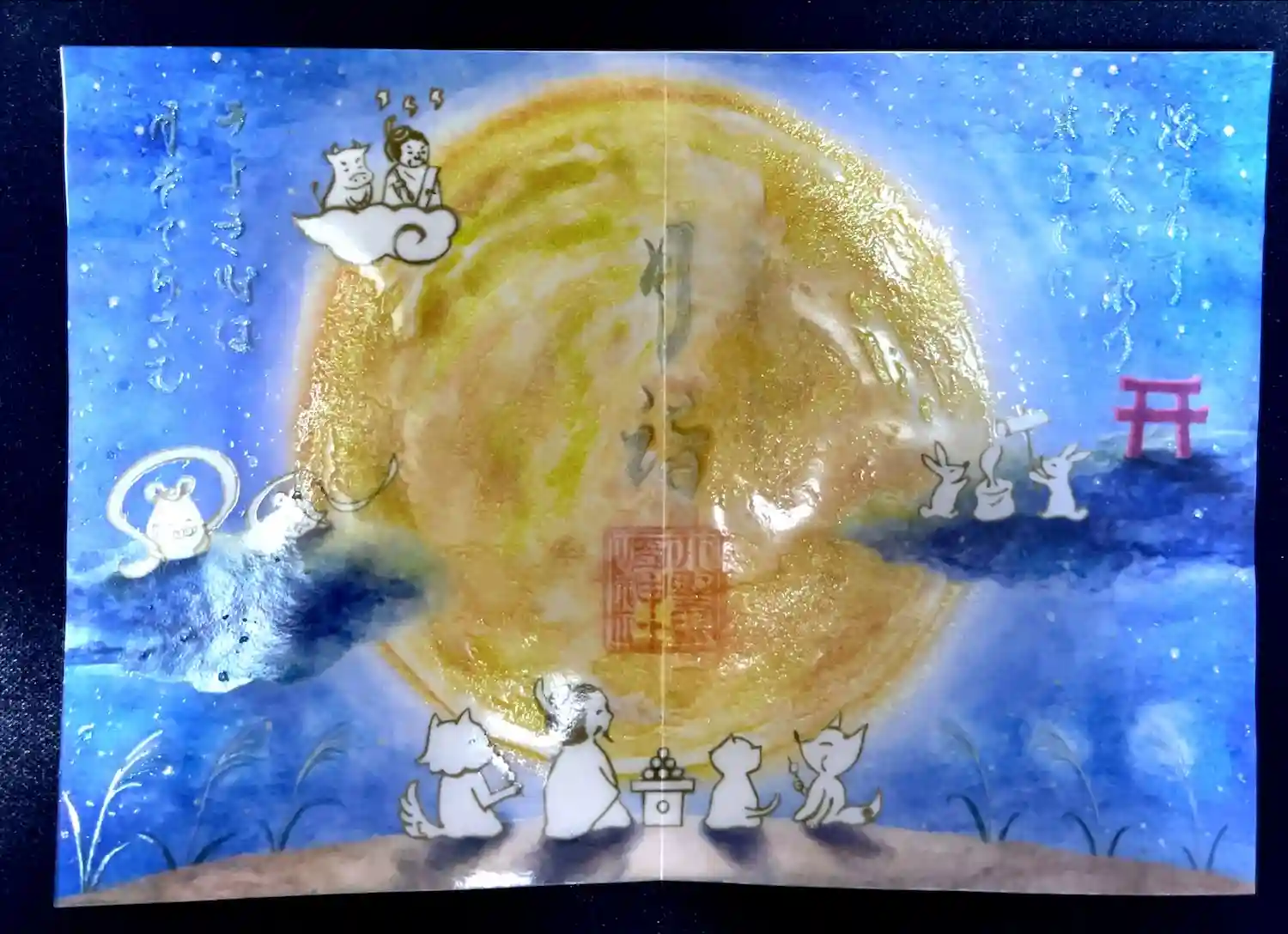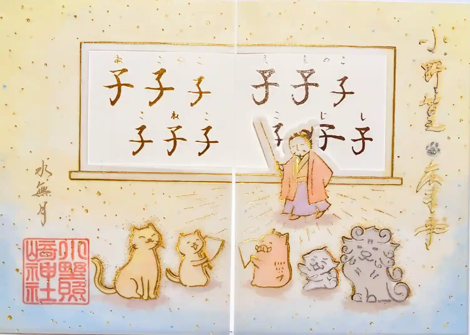 透かし紙をめくると金色の文字が書かれてあります。