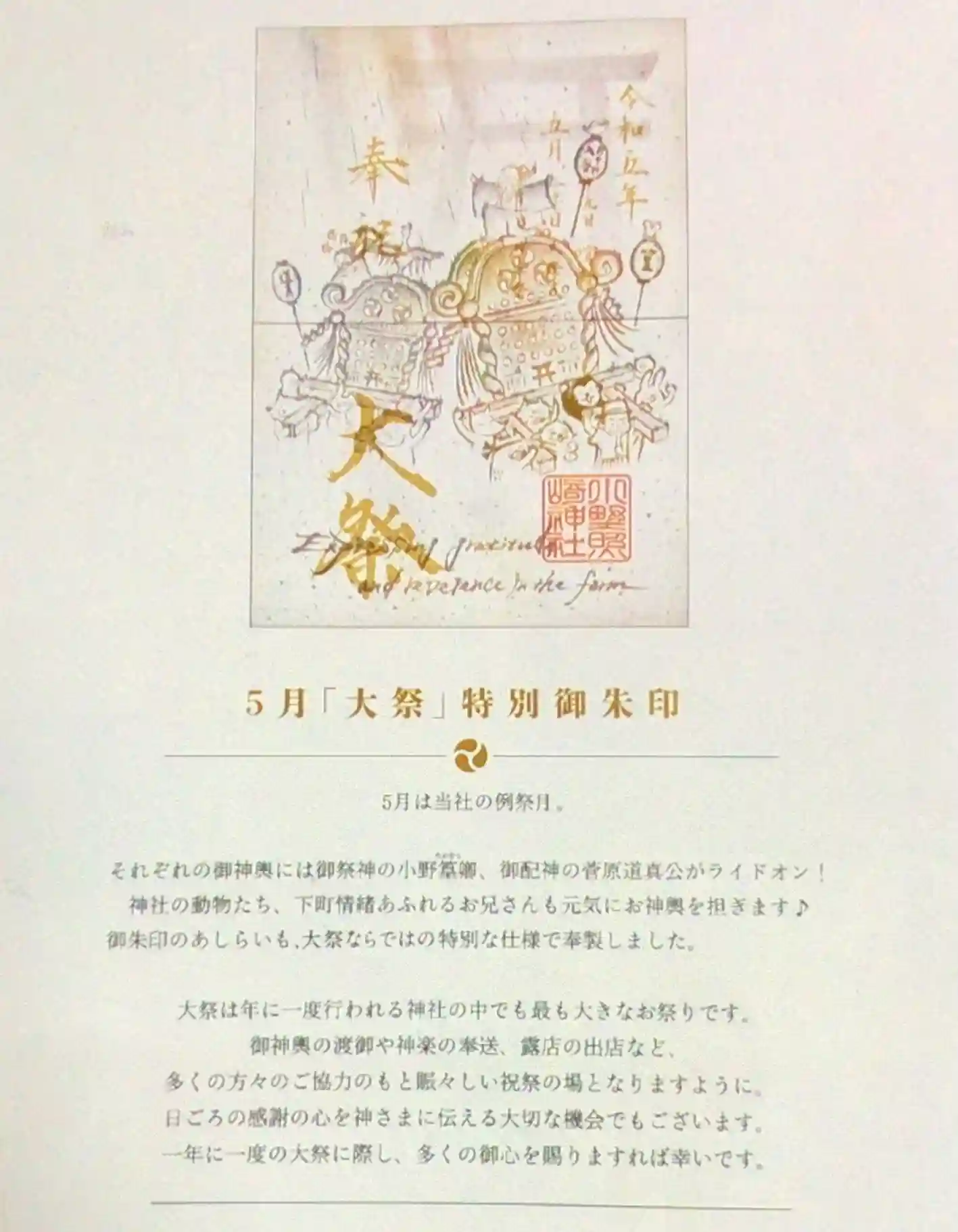小野照崎神社の特別御朱印です