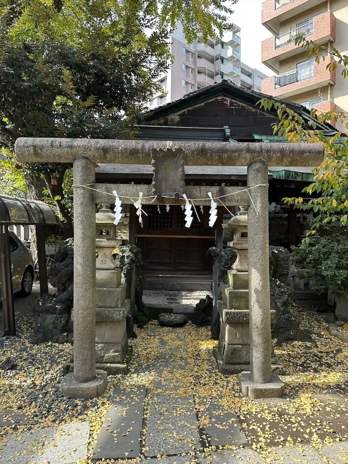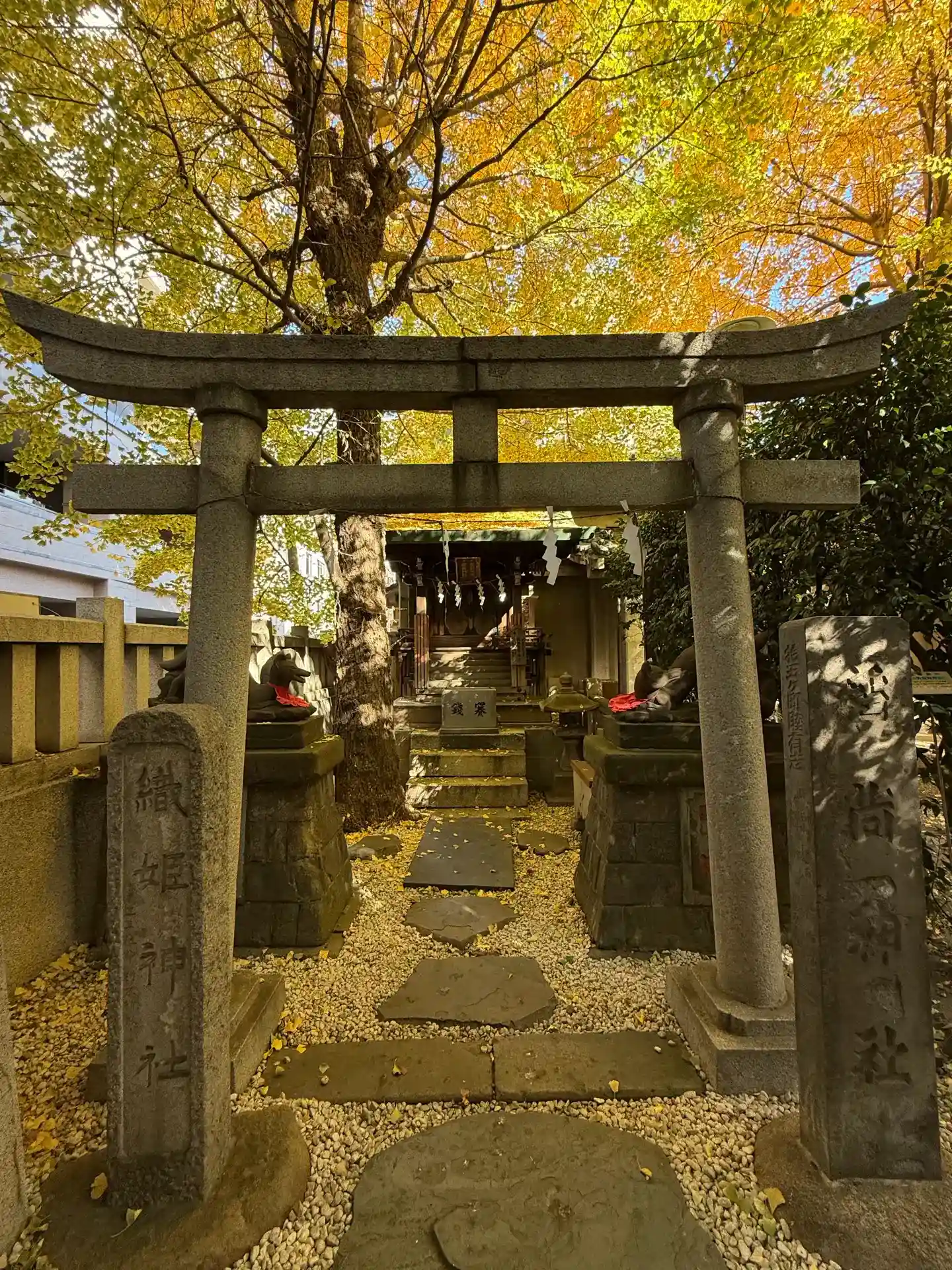 お稲荷さんの屋根にふんわりと積もった銀杏がとても綺麗でした~✨(…