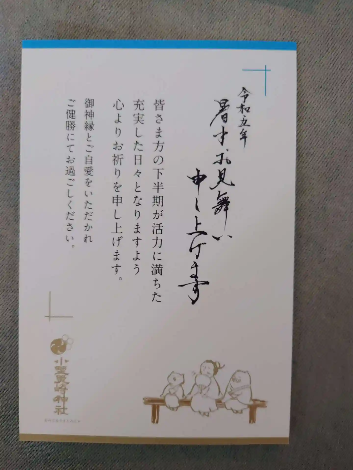 御朱印拝受でクリアファイルと暑中見舞いをいただきました😊
