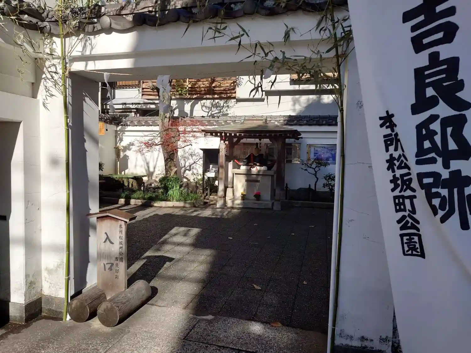 本日の目的地です。吉良邸跡地が本所松坂公園となっており、その中に鎮座しています。明日が討ち入りの日…
