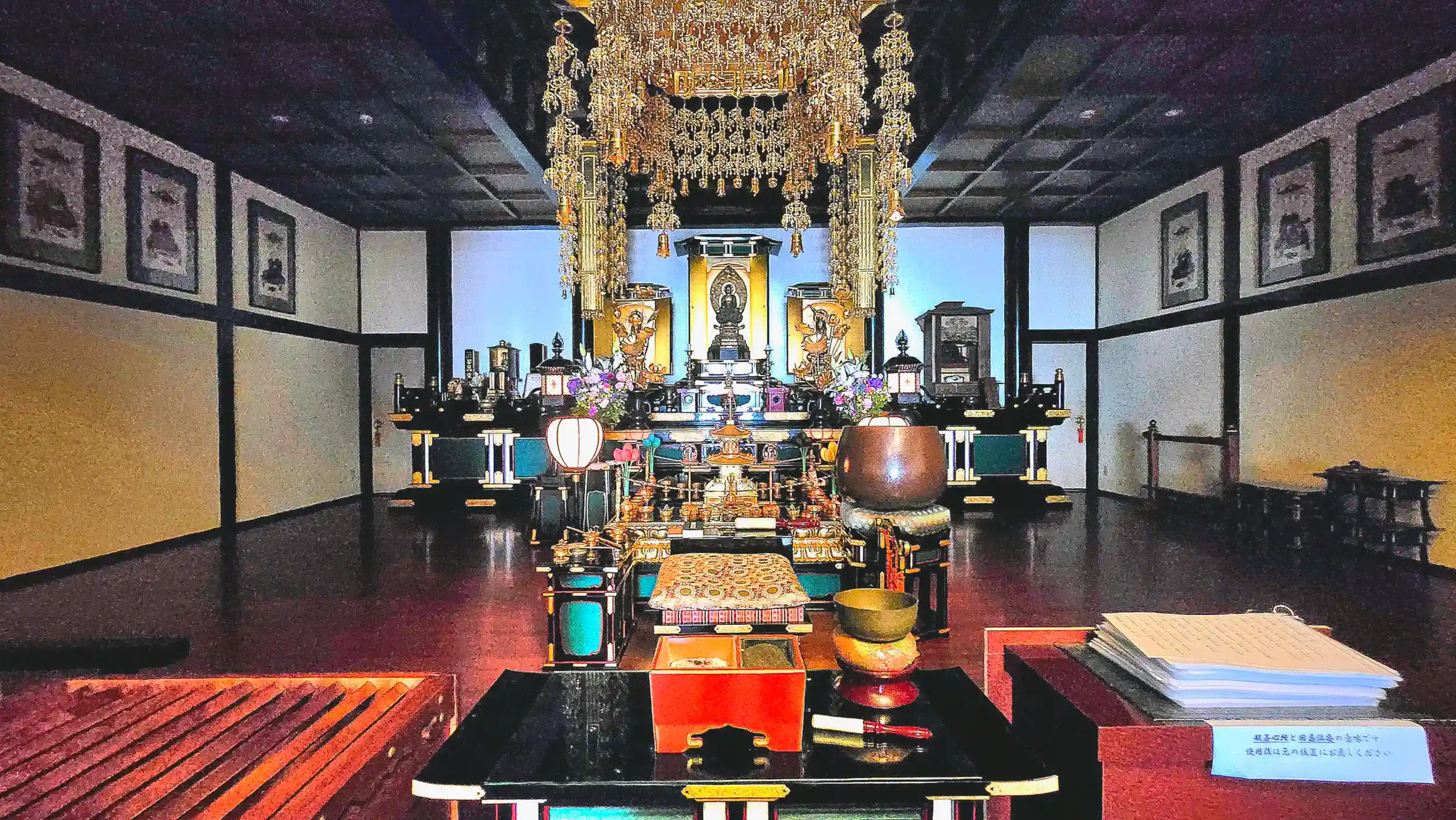 エレベーターを降りると中はパッと見、セレモニーホールの中ですが、扉を明けると立派な御本堂が。
