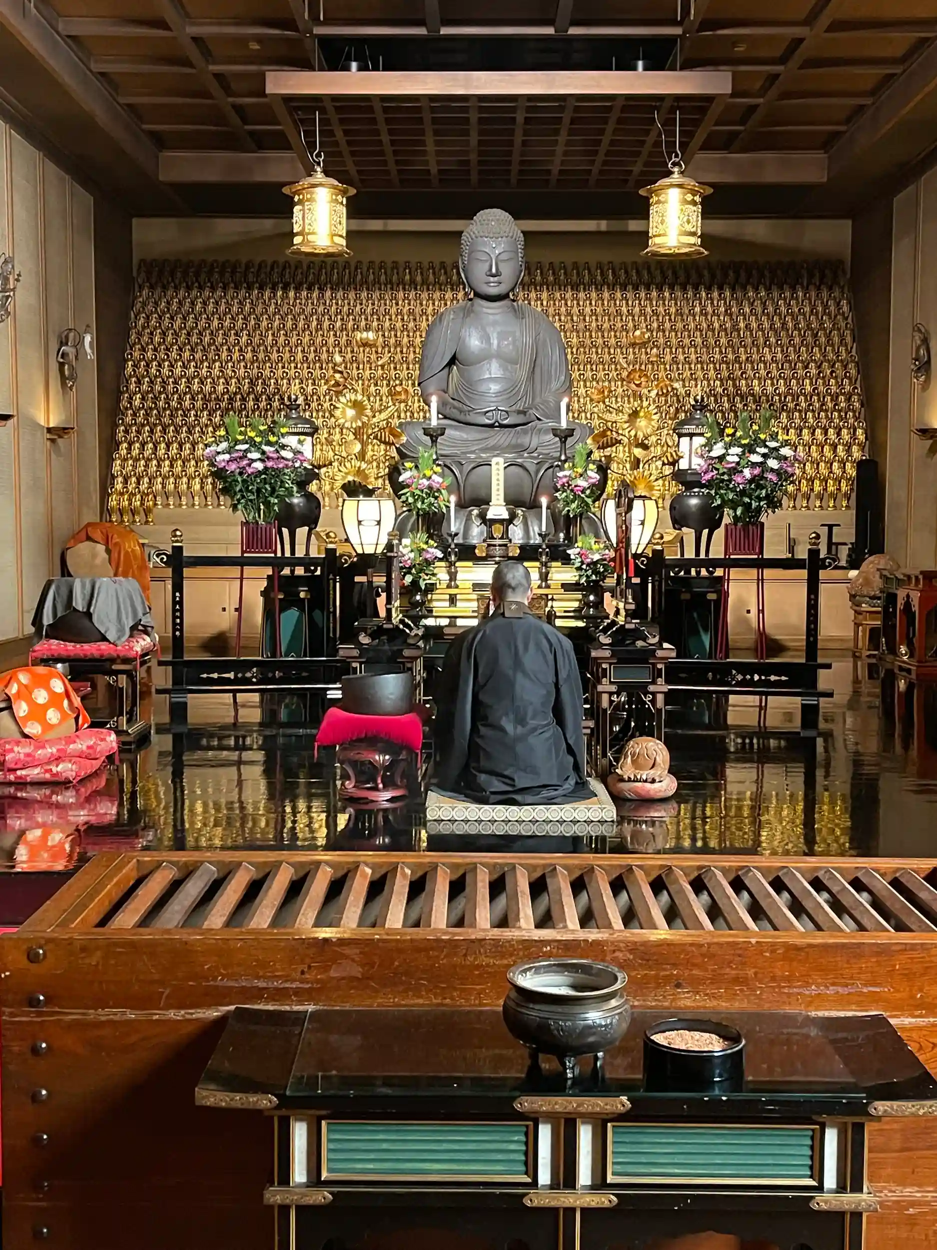 本堂前ホール: 天井中央部に特殊な音響効果を持つ格子の櫓があり、龍の鳴き声が聞こえるとされる