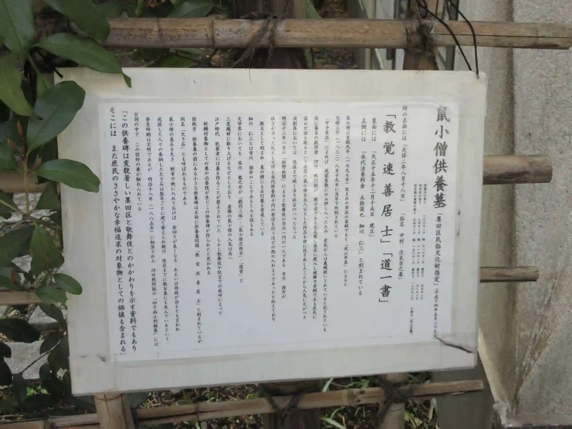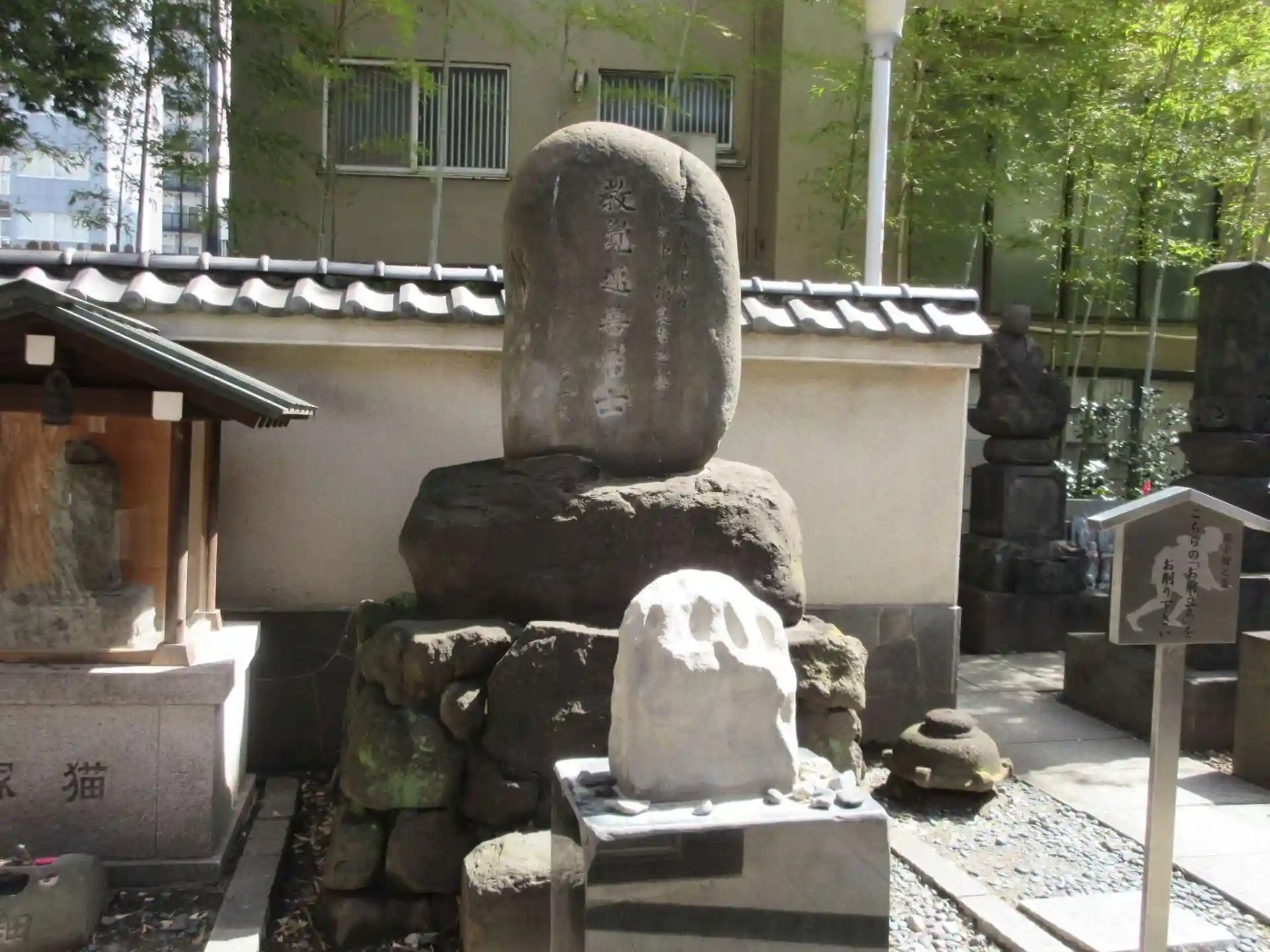 この寺の境内には鼠小僧次郎吉の墓があり、削るためのお前立ちもある。鳥居元長の記念碑もある。