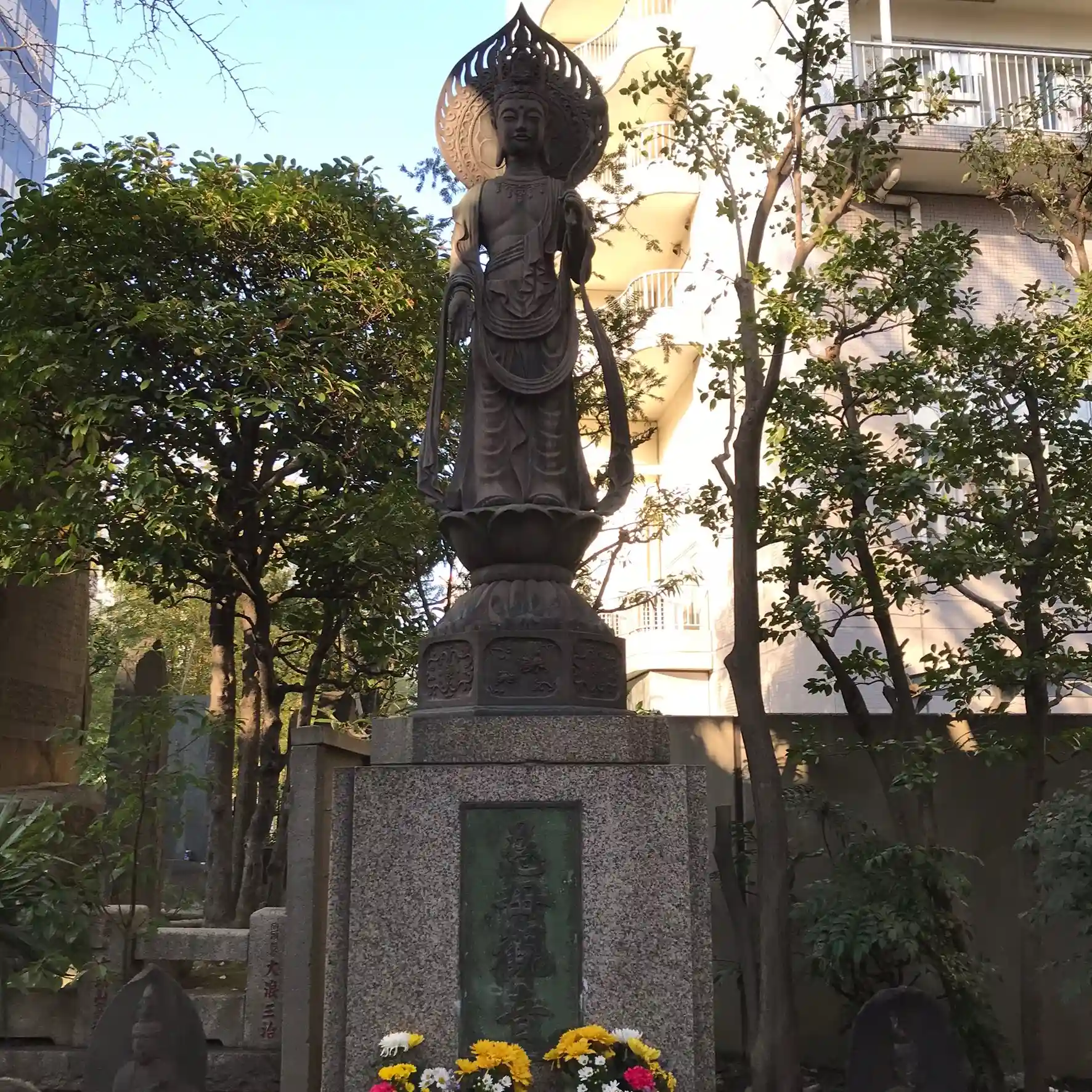 自転車で約4km 回向院へ。