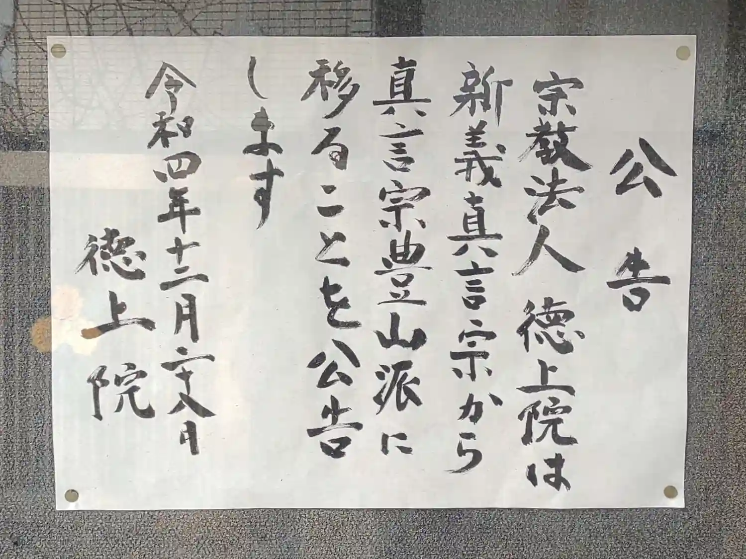 新義真言宗から豊山派に移る旨の掲示がありました。
