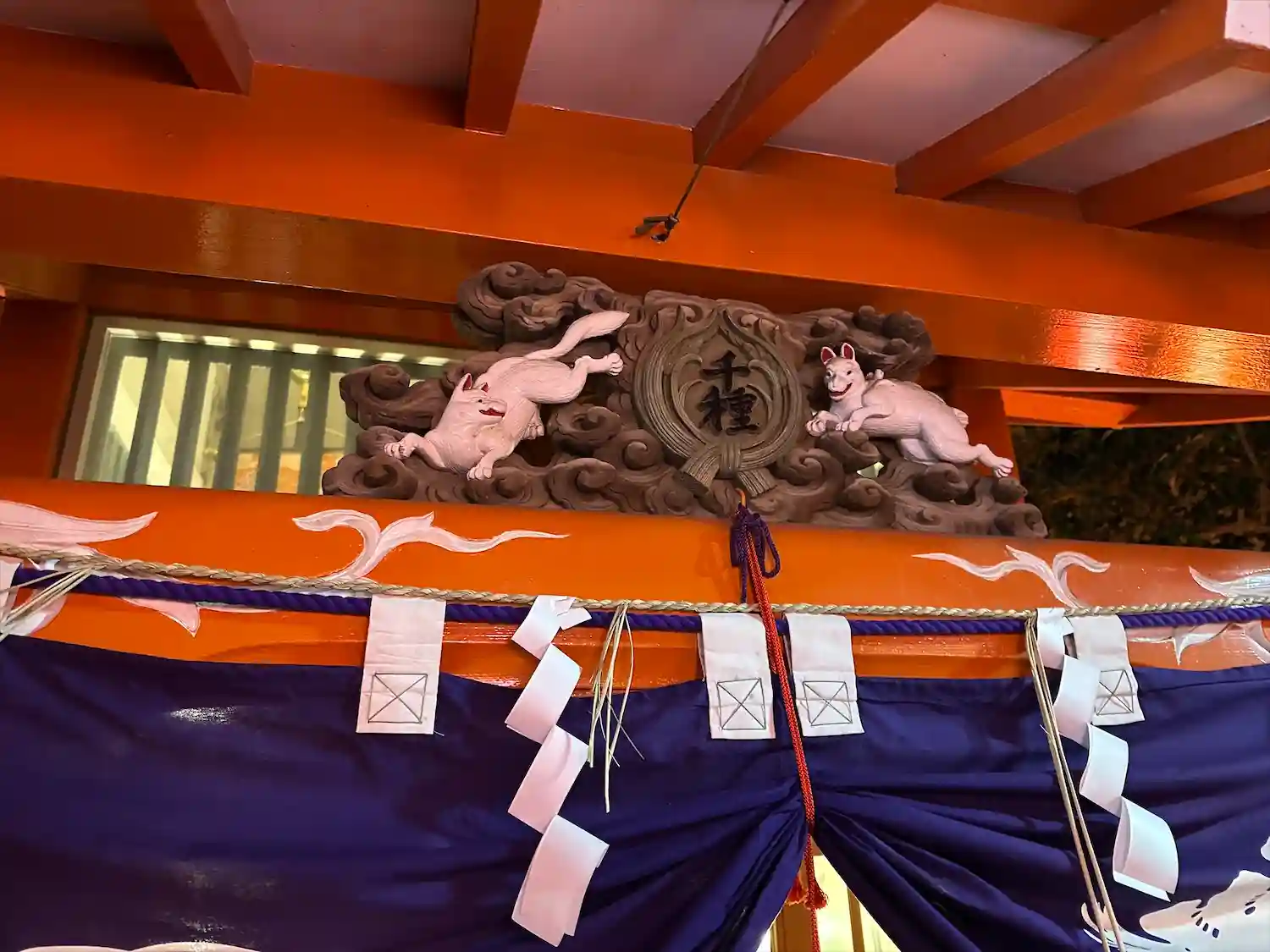 白狐が戯れている素敵な彫り物