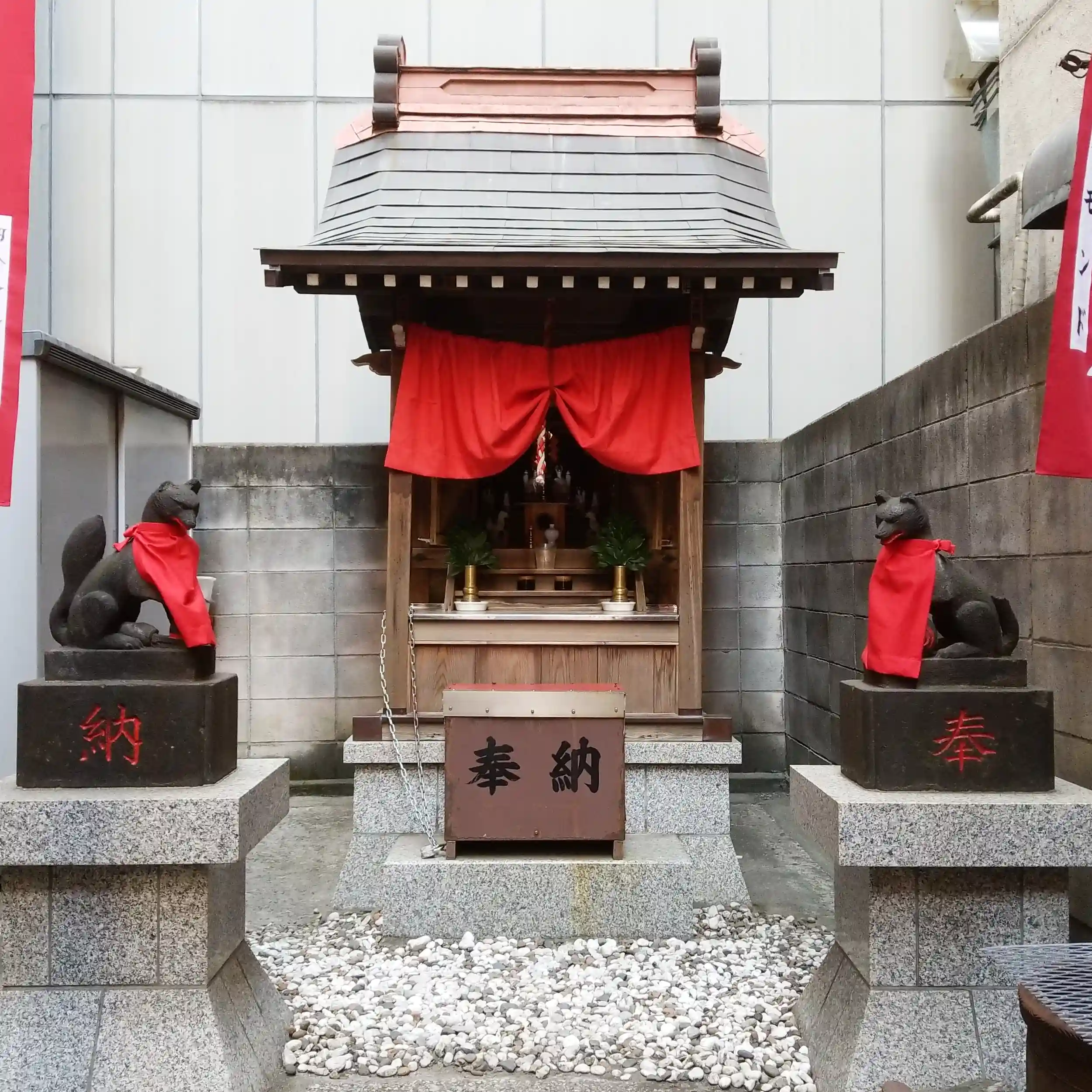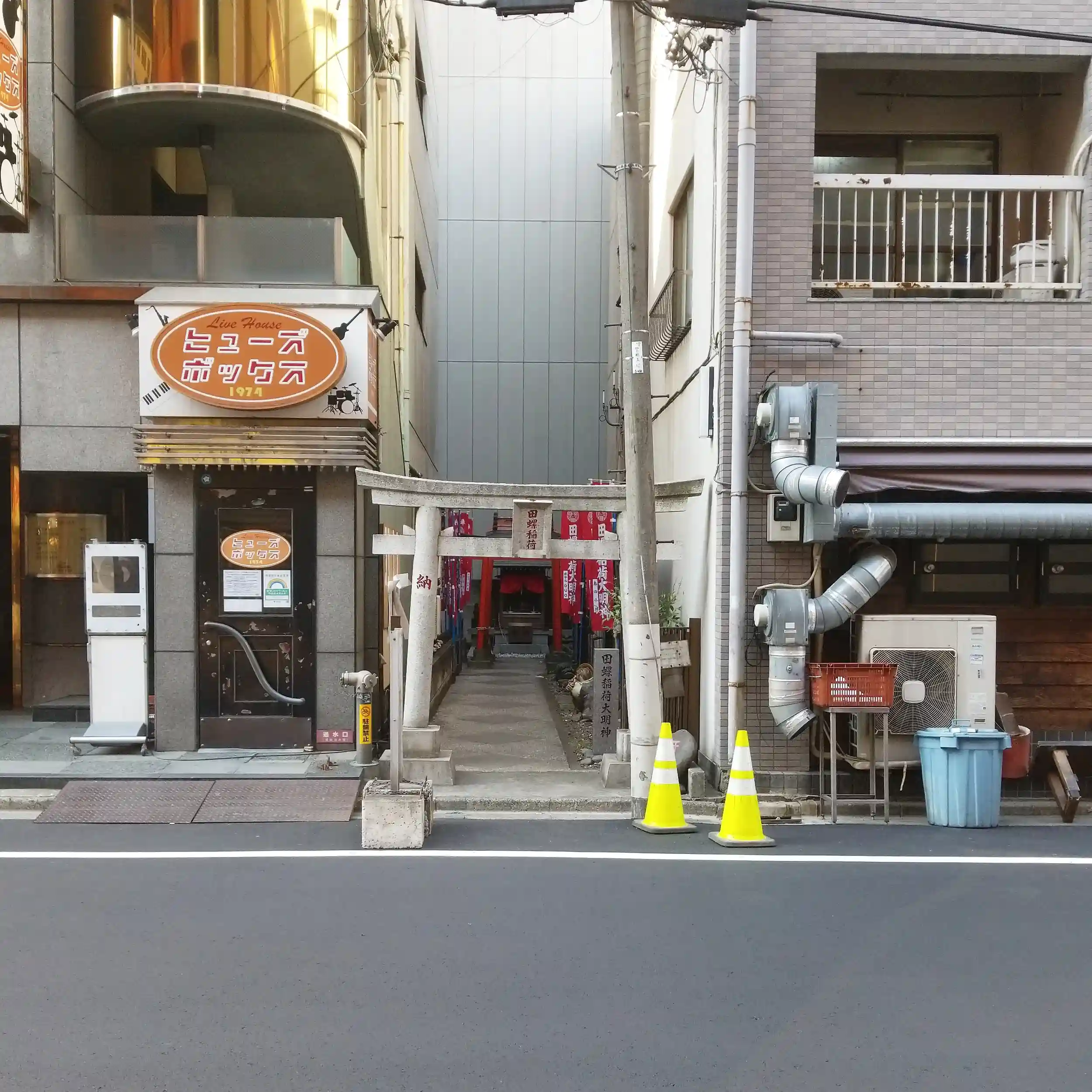 こちらの田螺(たにし)稲荷神社は、錦糸町駅近くの歓楽街裏のビルに挟まれて鎮座しています。