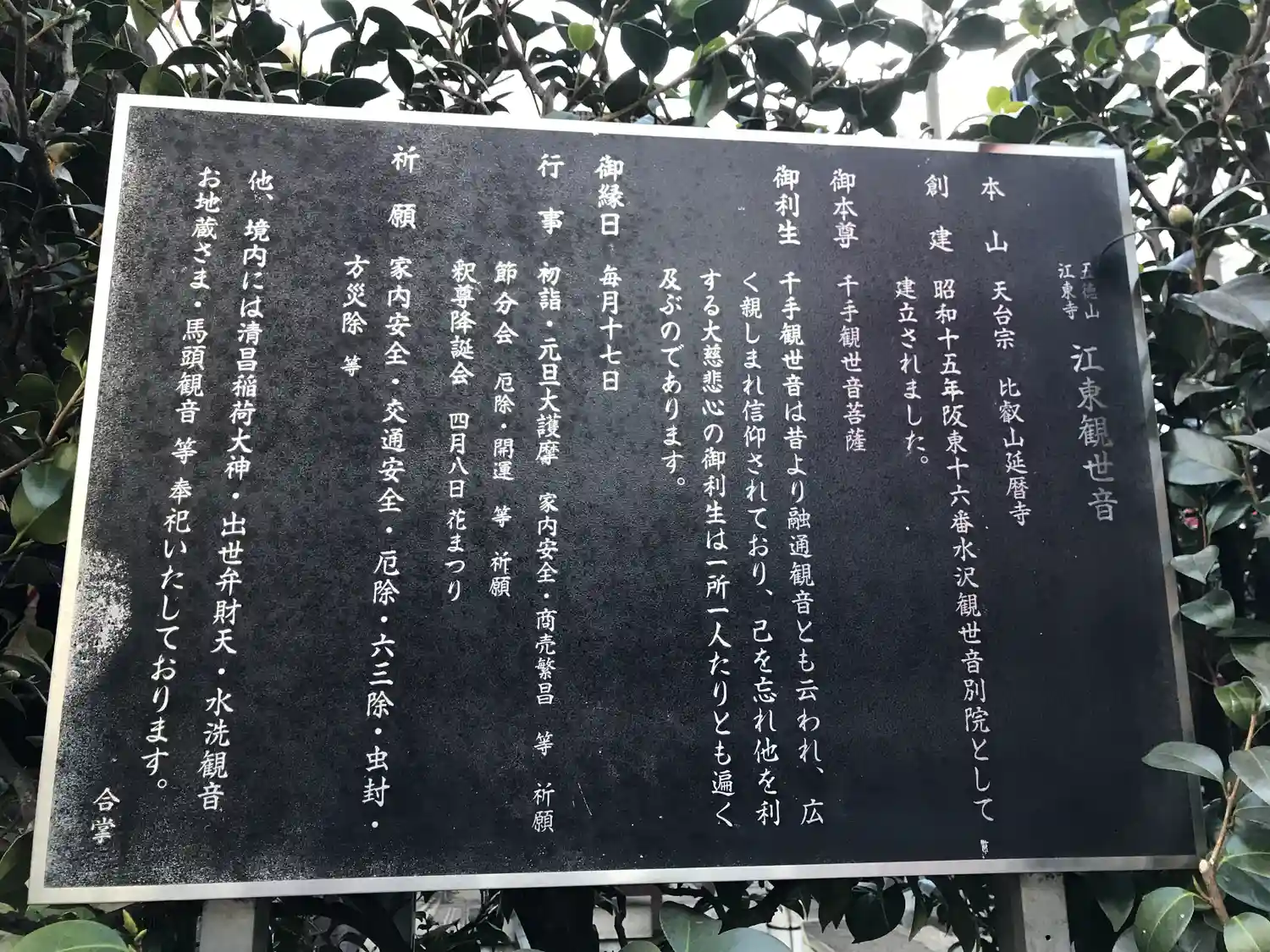 五徳山 江東寺(こうとうじ, 天台宗, 1940年)