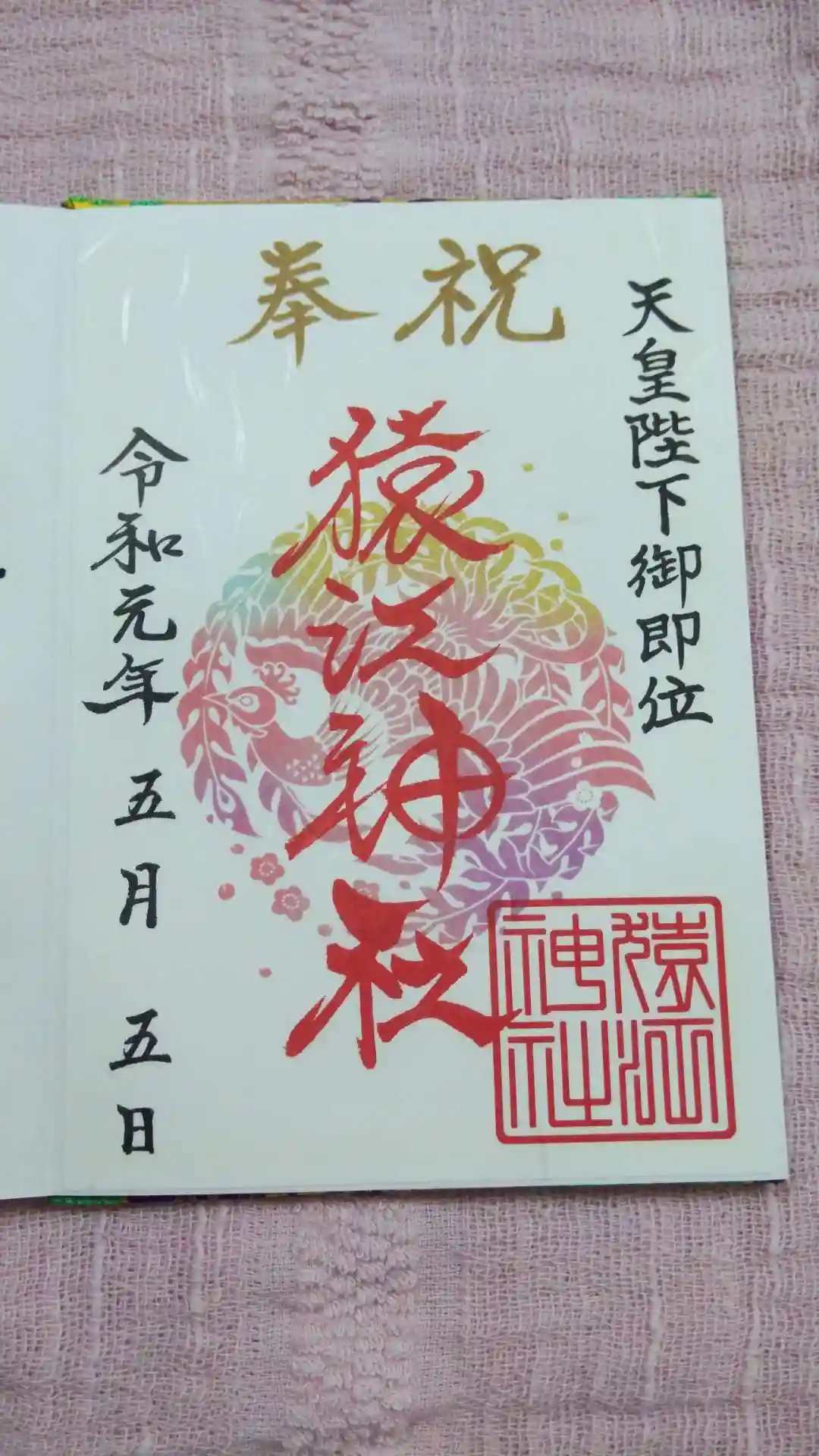 天皇陛下御即位(書き置き)の御朱印も頂きました。