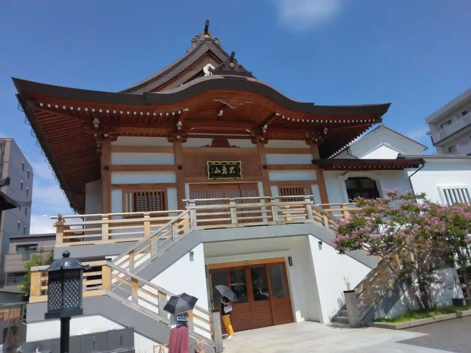 建て替えたばかりの綺麗な山門とお堂、みまもり観音が印象的なお寺です。