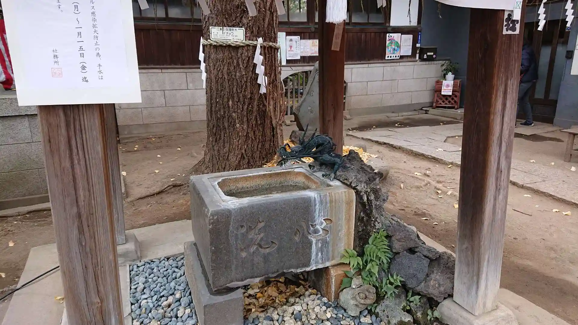 猿江神社の社務所が昼休憩でしたので、参拝後徒歩で向かいました。素晴らしい拝殿の彫刻でした。こちらも昼休憩中。社務所前で時間を潰し、待つこと30分弱、素敵な御朱印を戴きました。