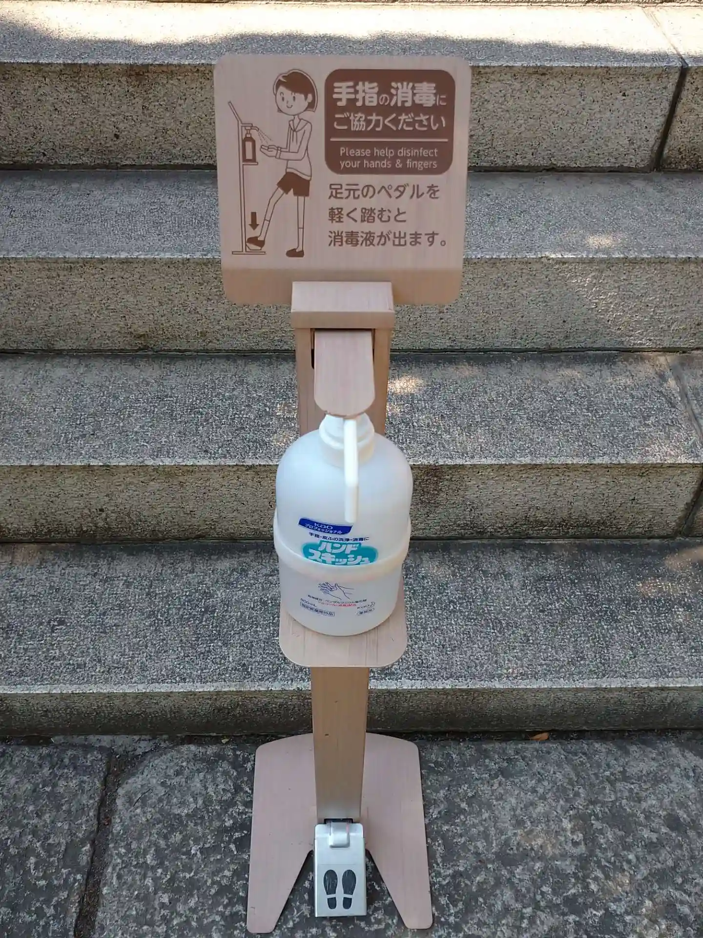 拝殿前の階段に消毒液