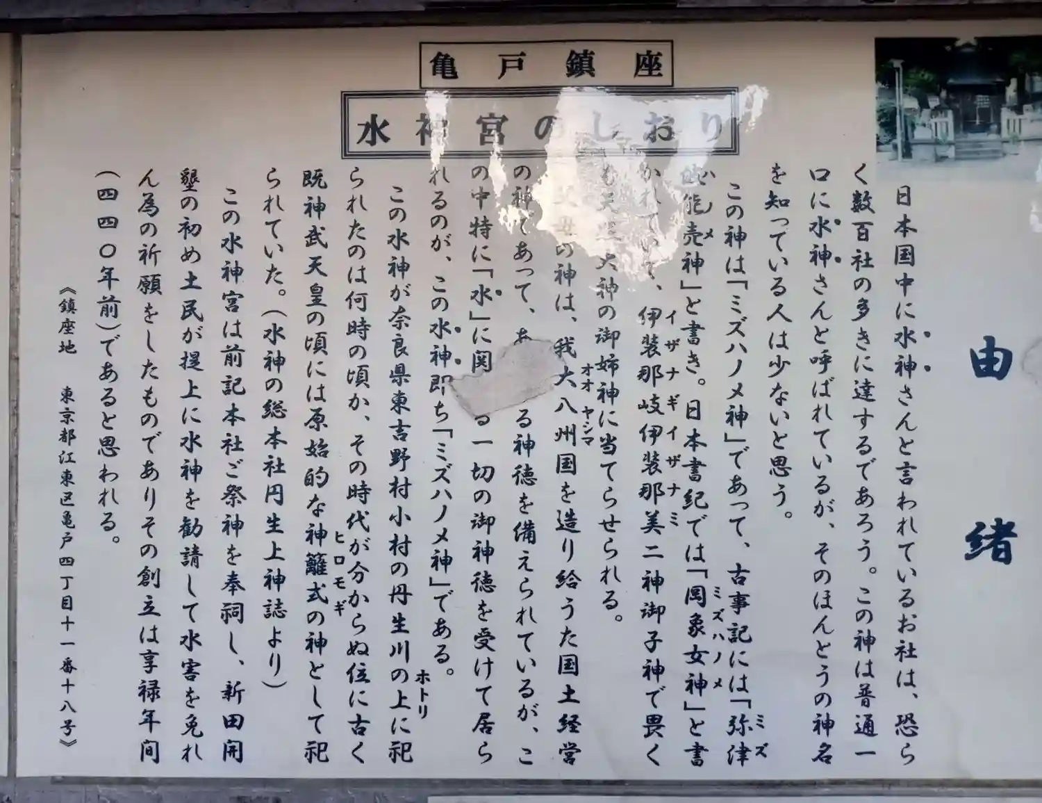 亀戸水神社の由緒説明板