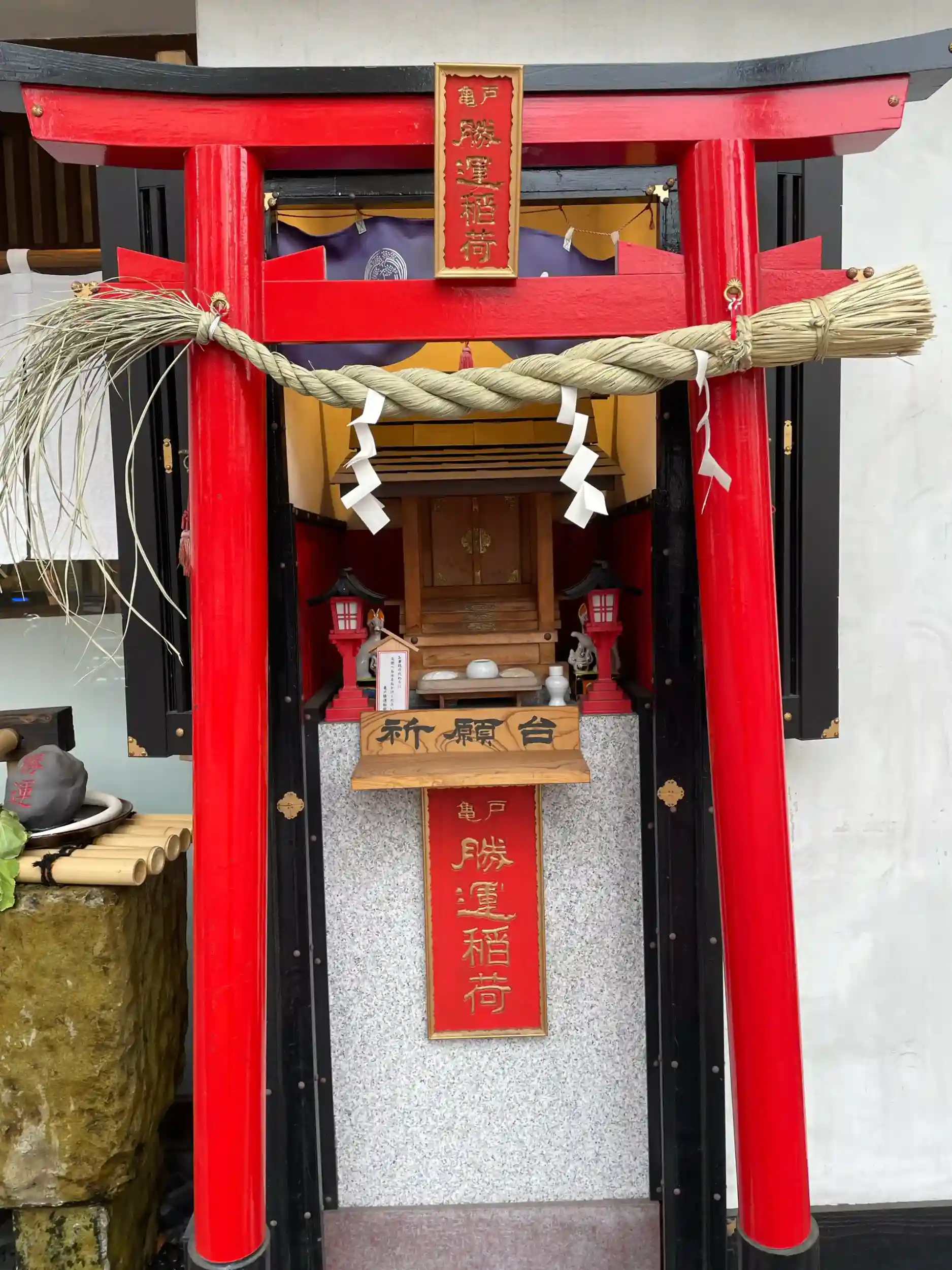 東京都江東区亀戸2丁目にある「亀戸升本 すずしろ庵」の店舗前に祀られている稲荷神社。
