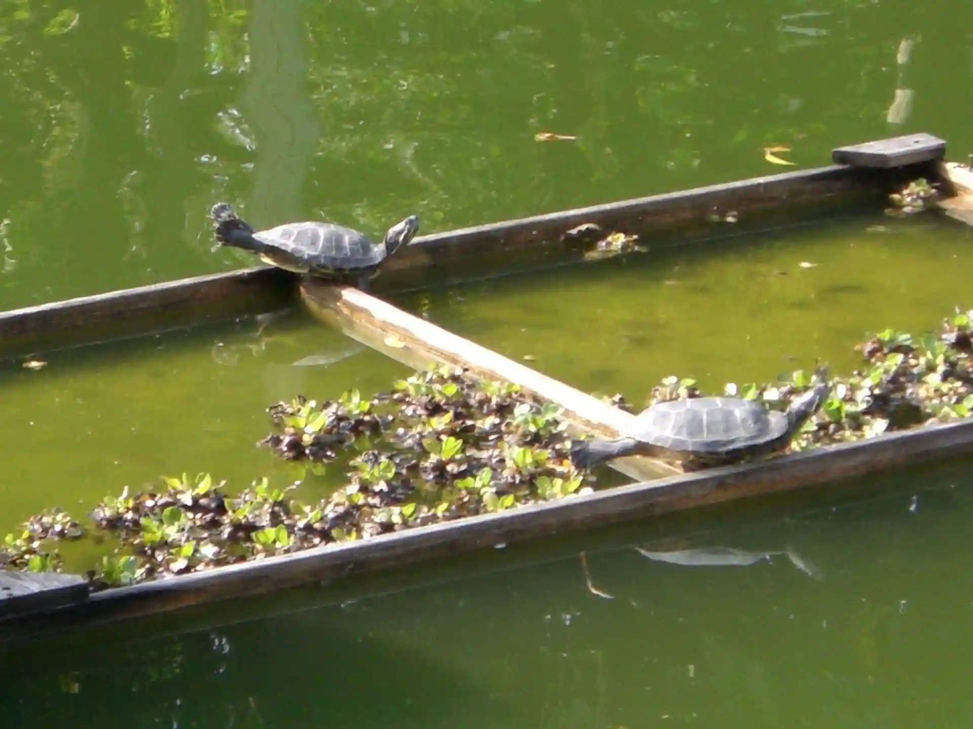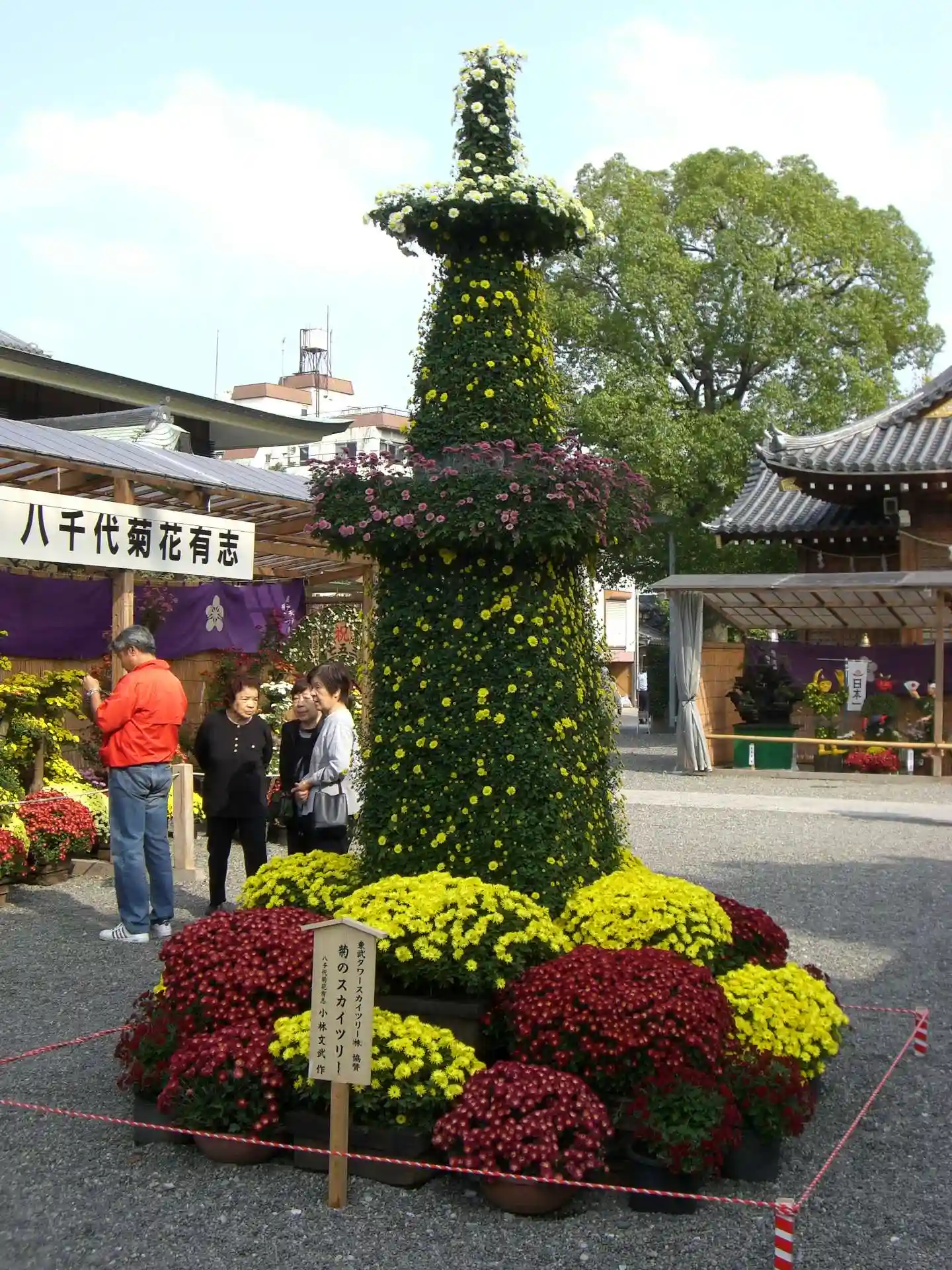 敷地内では有志の菊の展示がされており、池にはミシシッピアカミミガメとアオサギがいた。