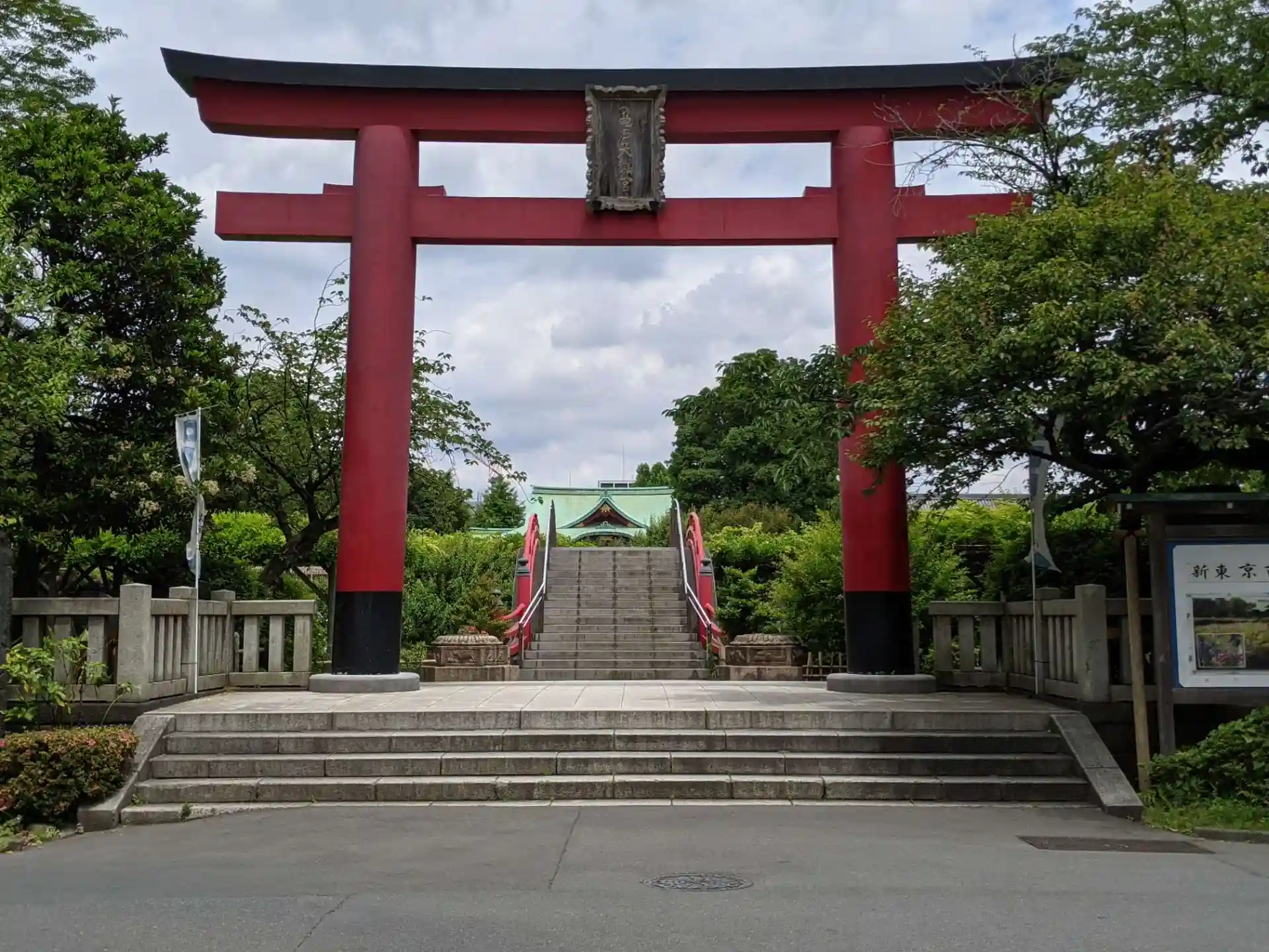 鳥居を抜けると、橋で御本殿がちらりしか見えません笑