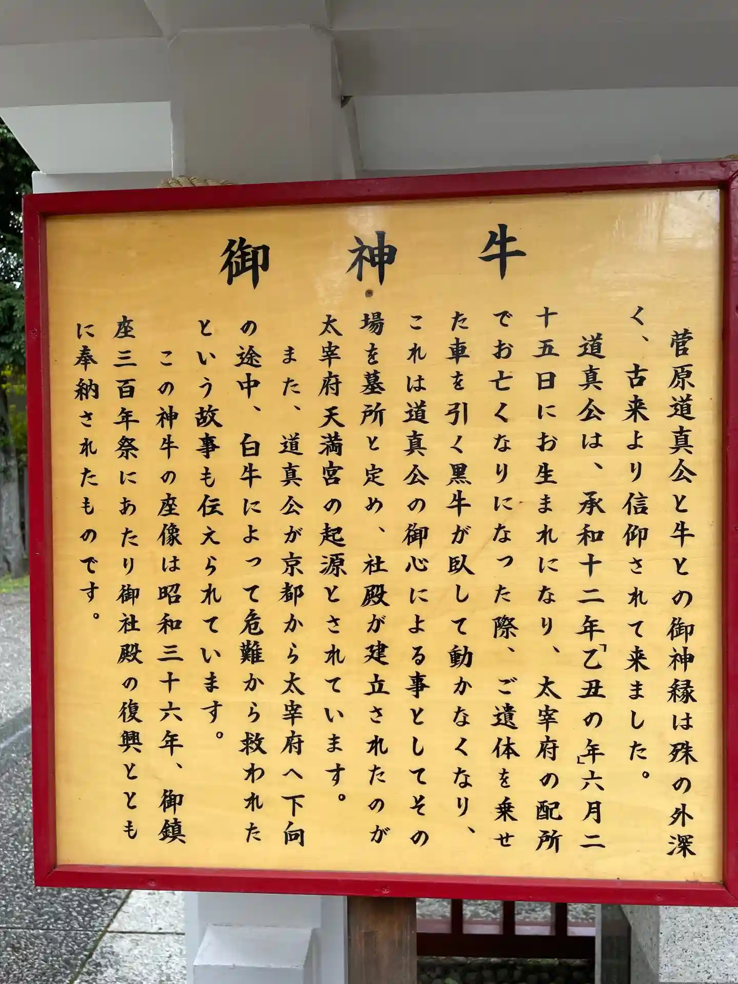菅原道真公を祀った神社には、なぜか牛が多いなと思っていましたが、解説がありました。まず丑年生まれ。亡くなった際に遺骸を運んだ黒牛が伏して動かなくなった場所に太宰府天満宮を建立したこと、等いくつかの御神縁があるとのことです。