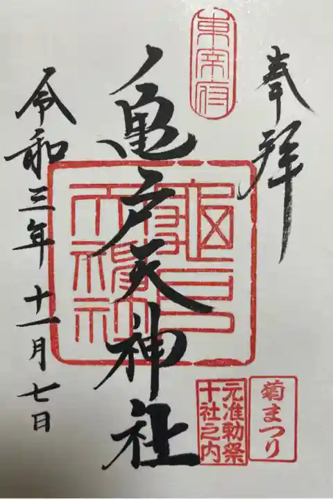 2回目の訪問。七五三と菊まつりでまぁまあの人手でした。スカイツリーも見えるのでなんだかお得?かわいい色の御朱印帳もいただきました。