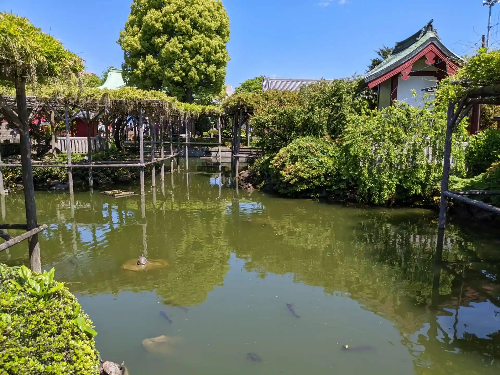 亀さんがいっぱいいる心字池。