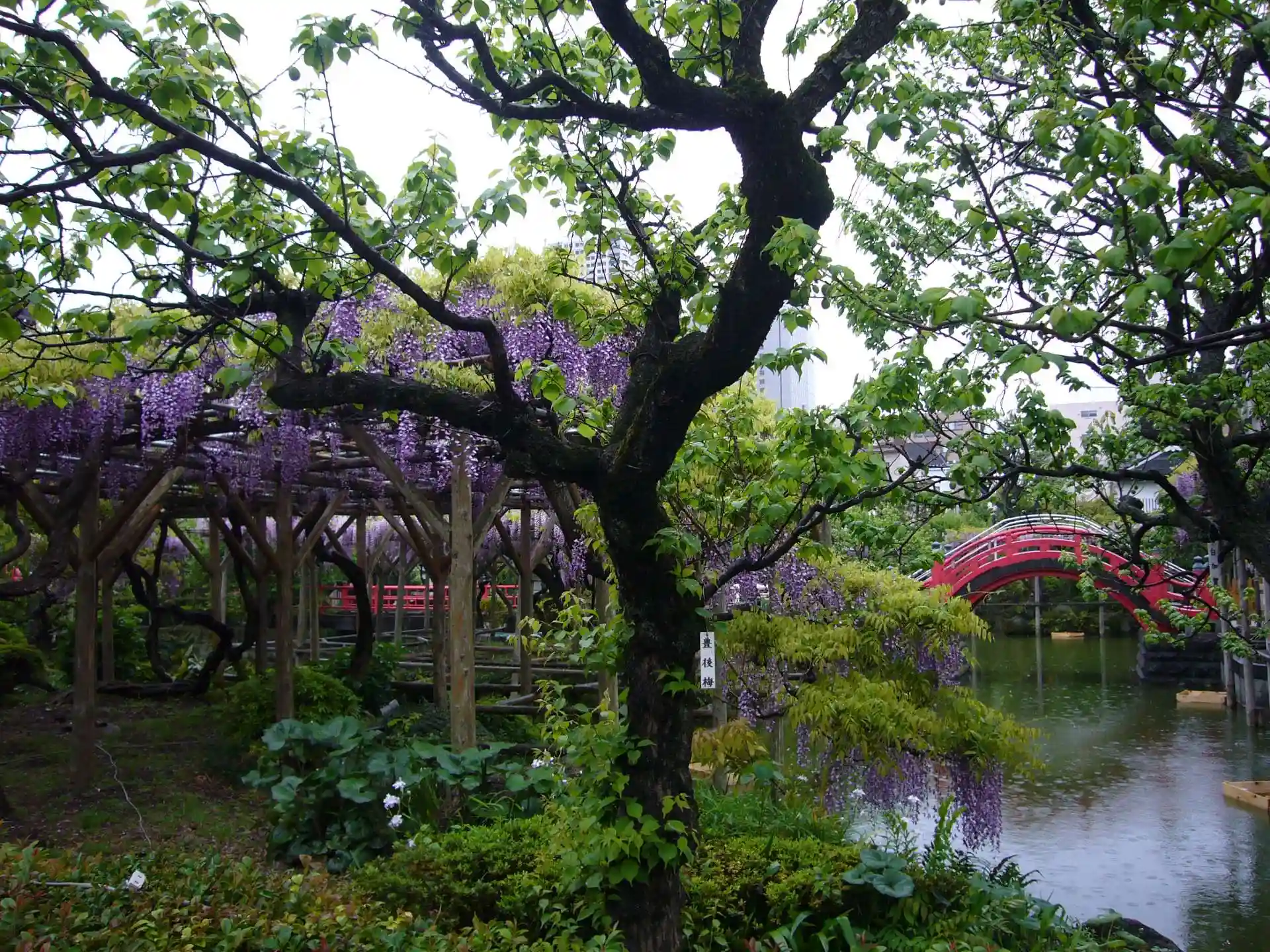 太鼓橋に藤が、かかっている時が見頃と言って良いと私は思います。