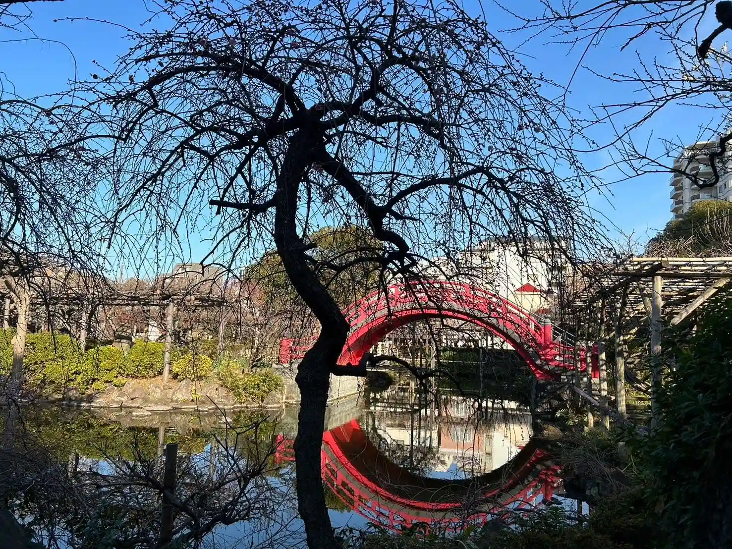 太鼓橋と水面の橋が美しい💓ナイスショットですね😉
