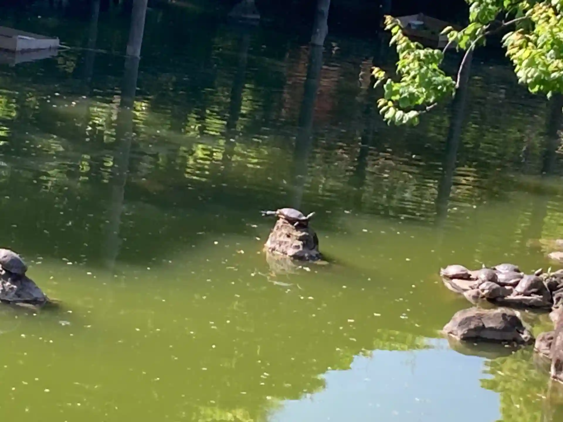 亀戸だから?お池に亀さんたちが泳いでいたり日光浴していたり