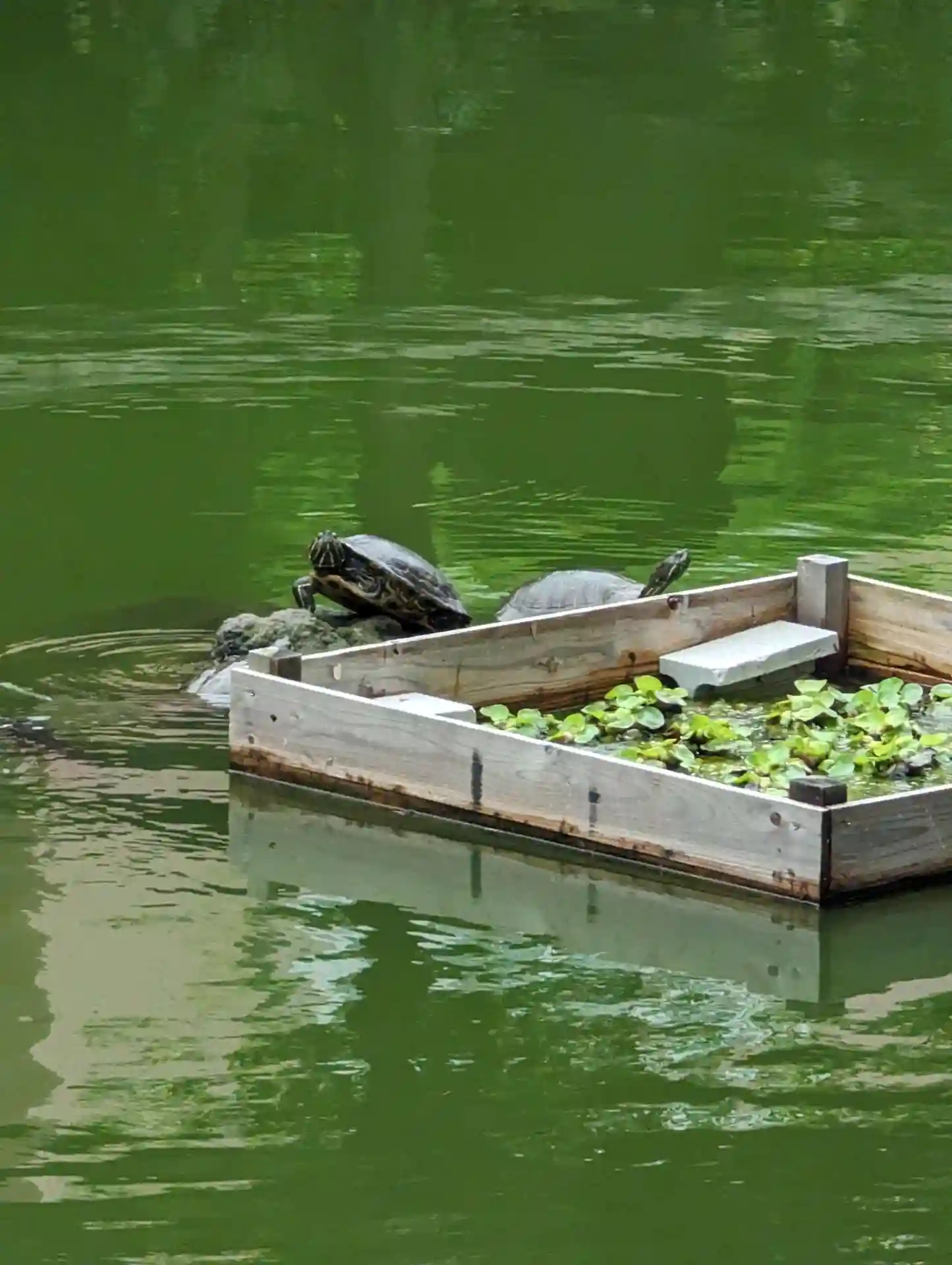 池には亀が。