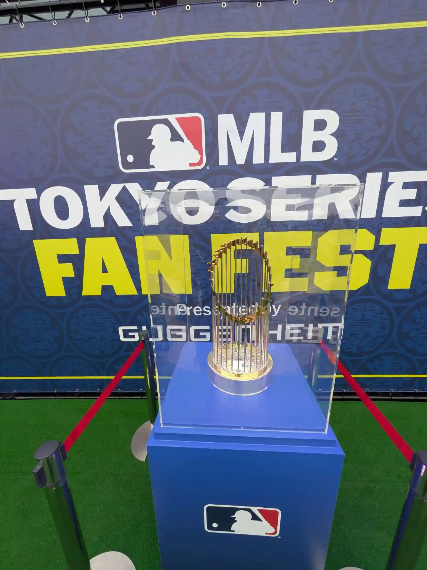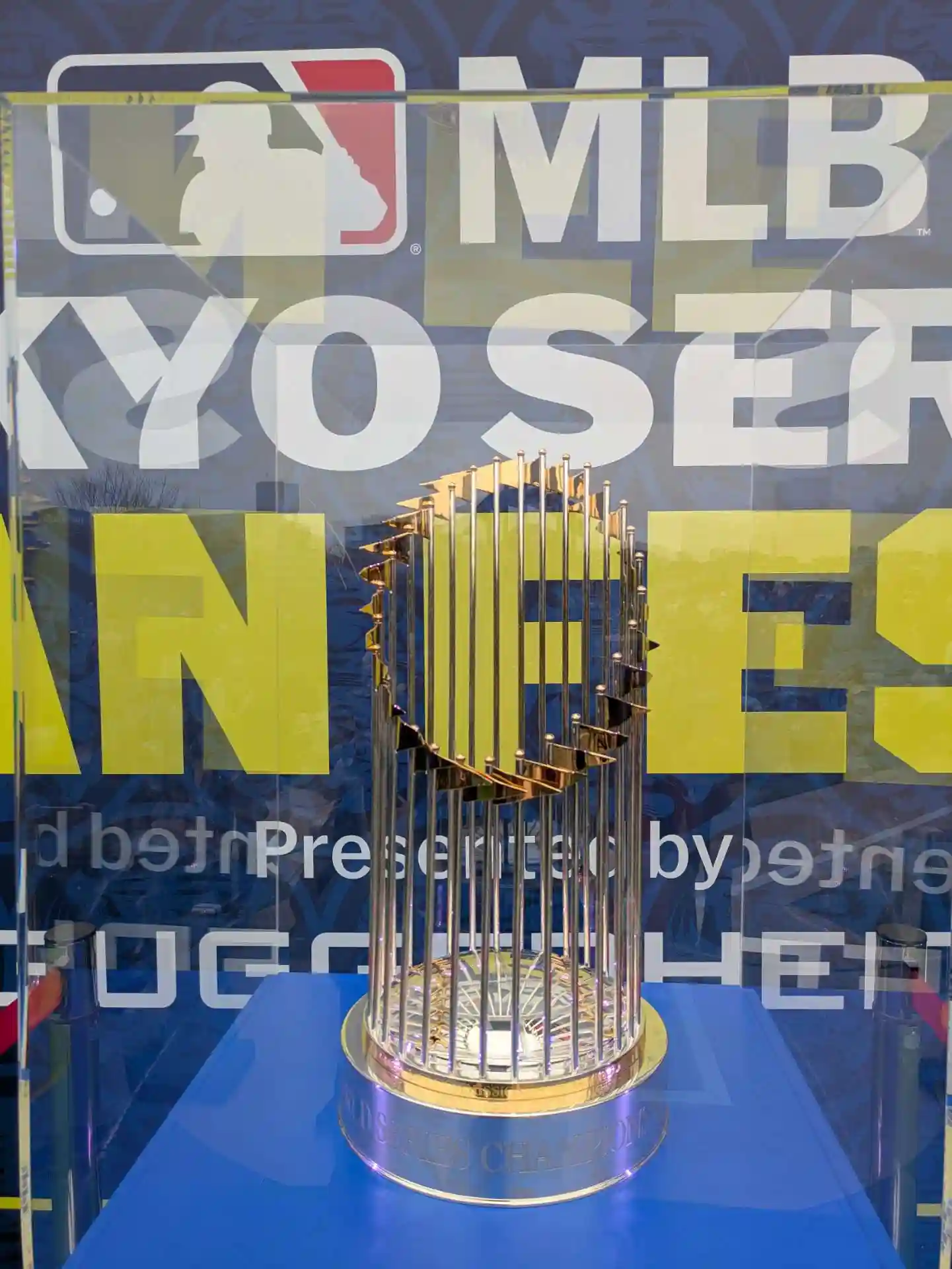 ワールドシリーズのトロフィーはソロで見学してもスタッフさんがトロフィーと一緒に撮影してくれました(無料)。