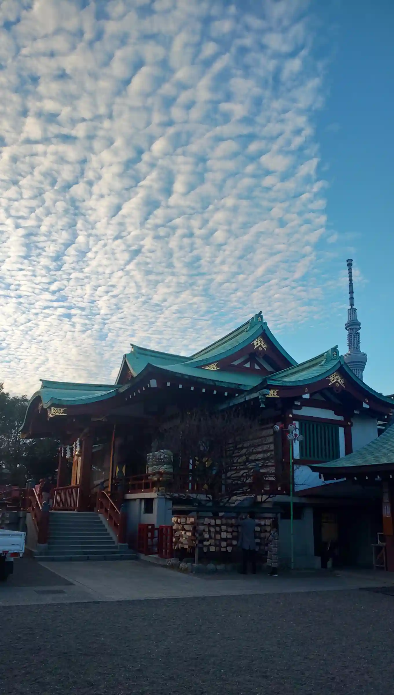 スカイツリーをバックに拝…