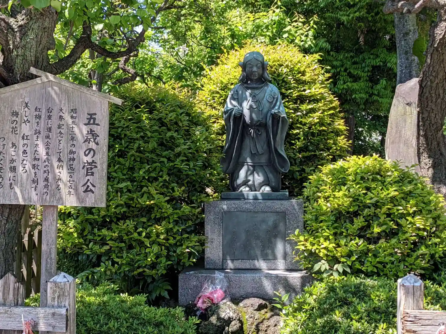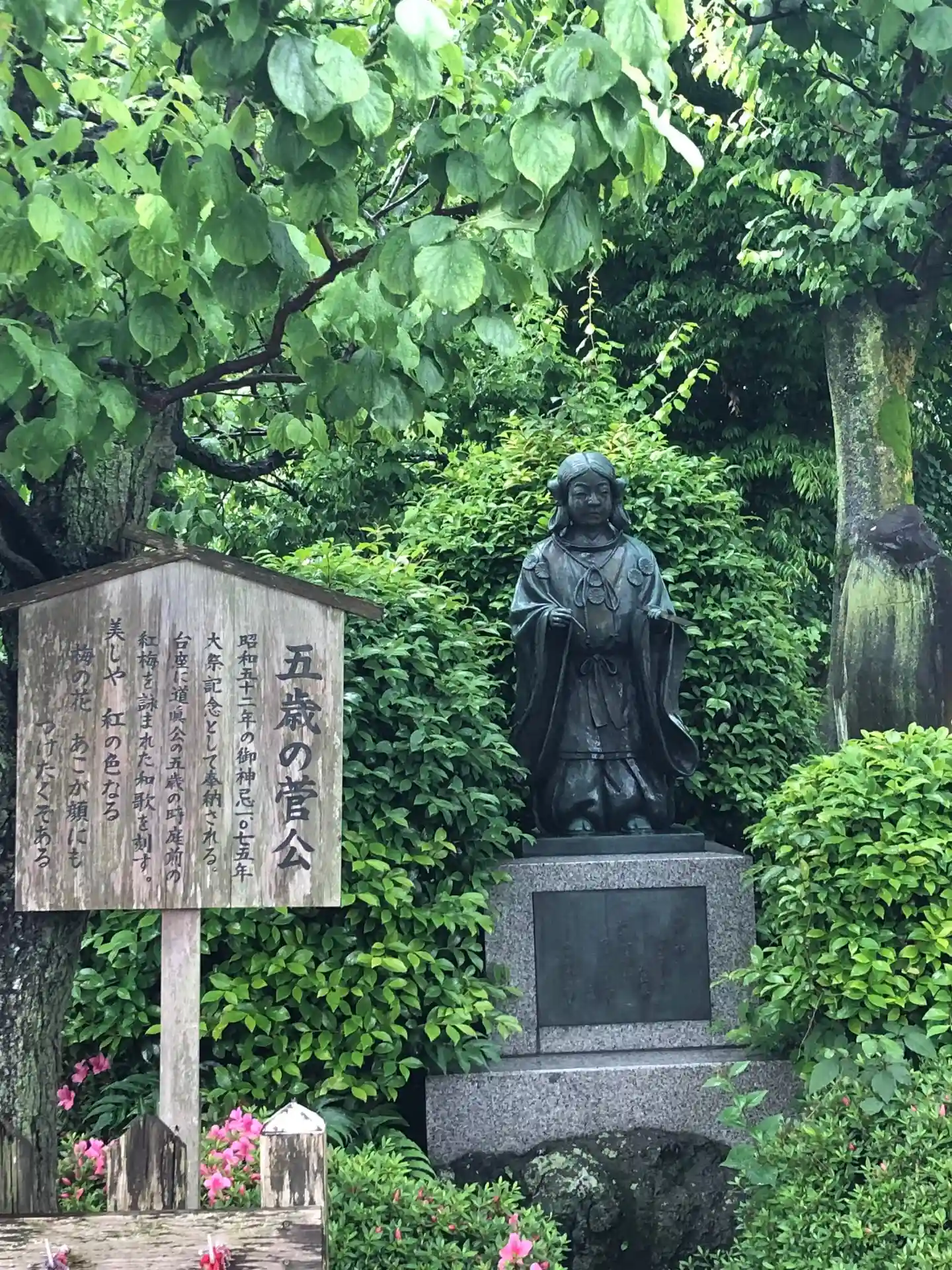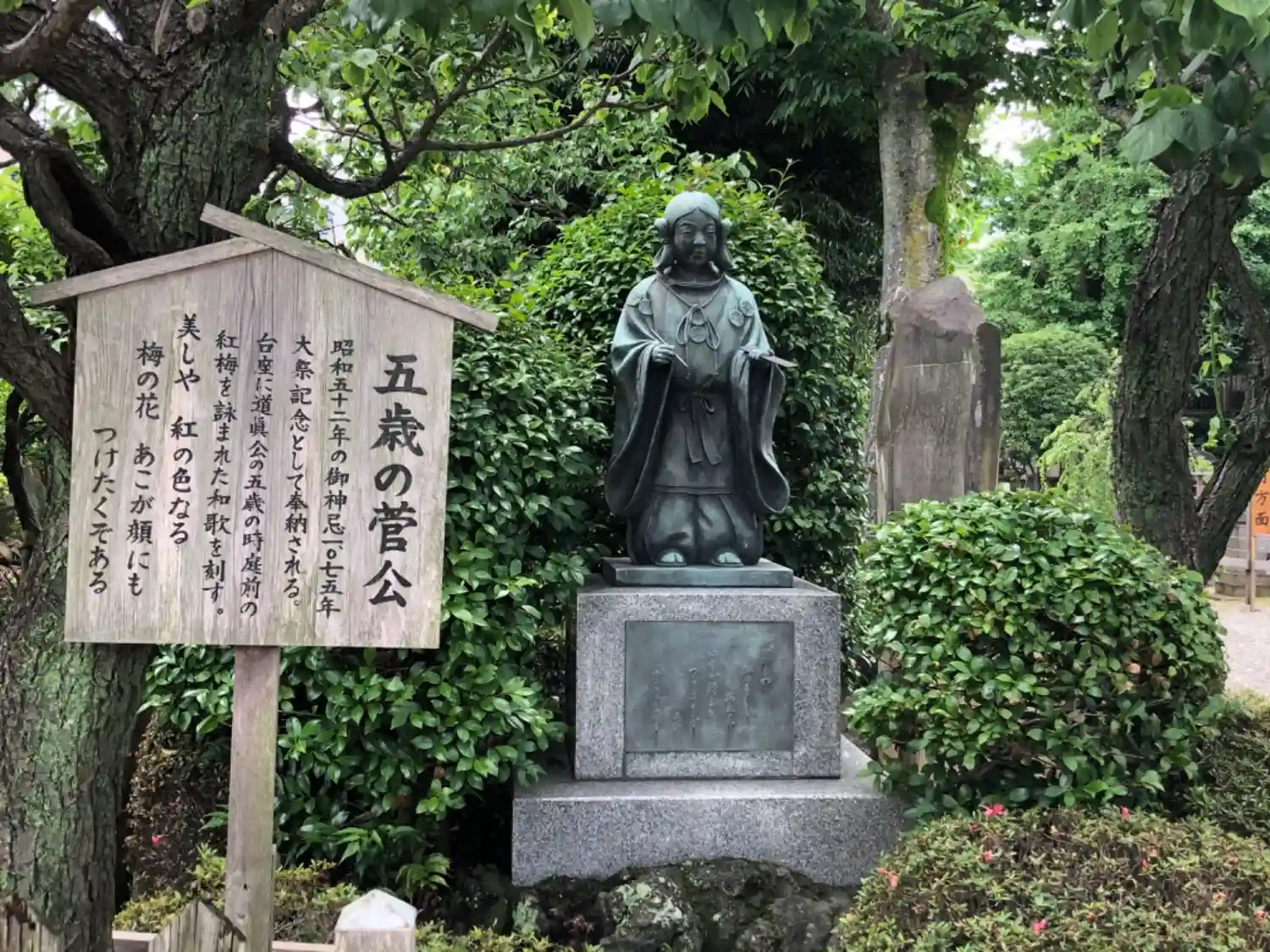 道真公の像と5歳のときに詠んだとされる和歌